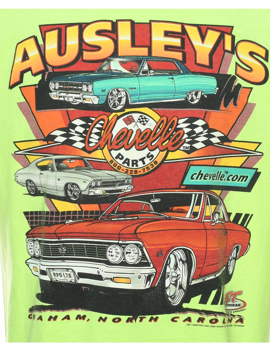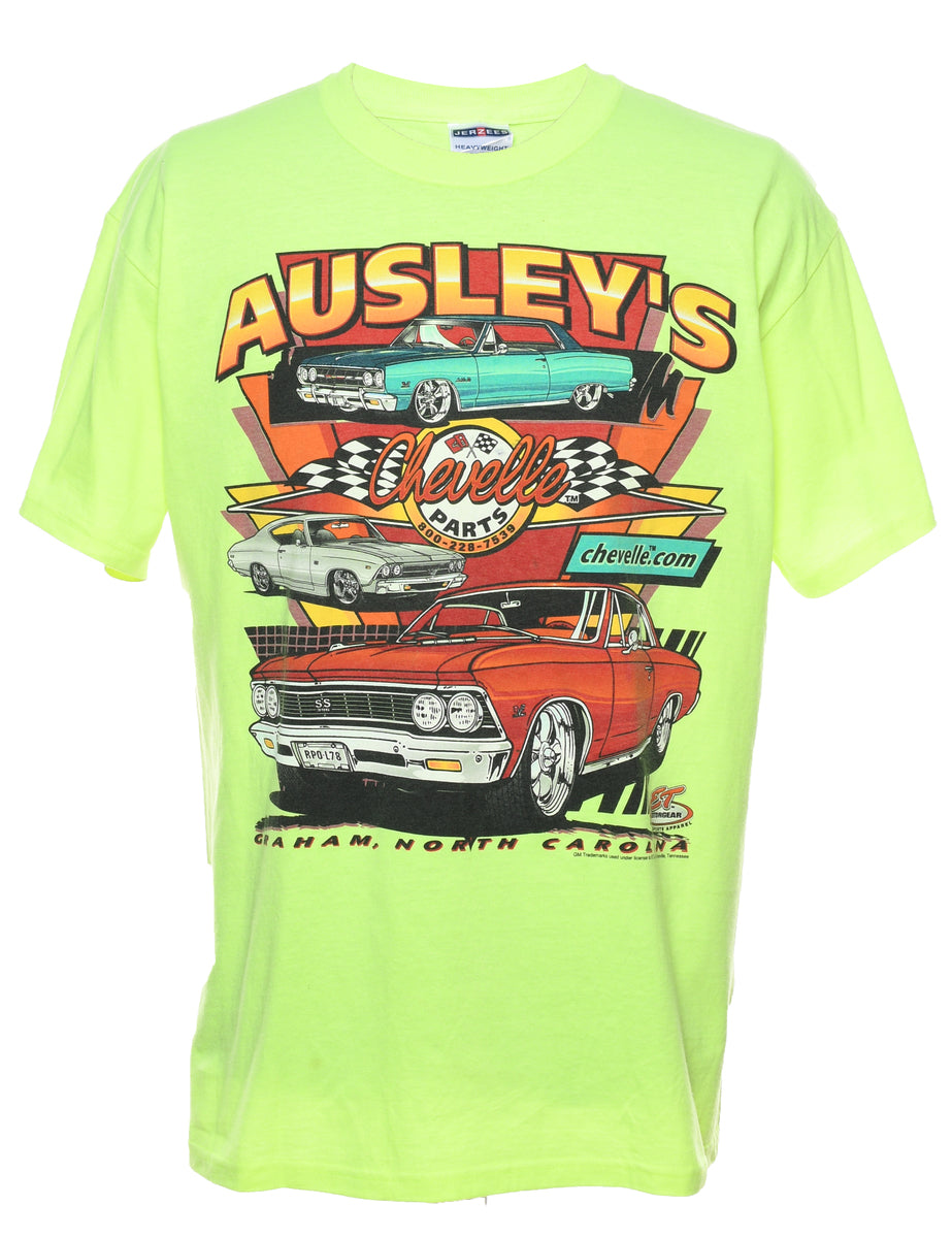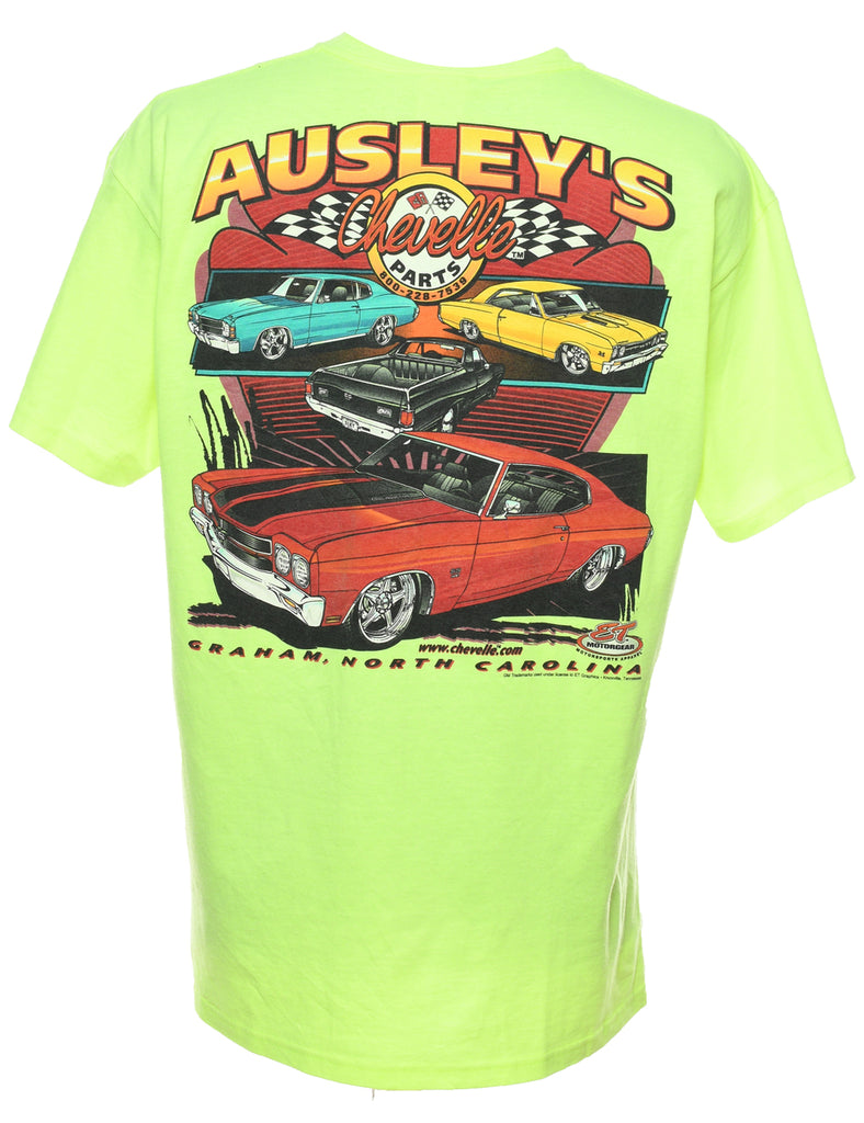 Lime Green Car Design Printed T-shirt - XL