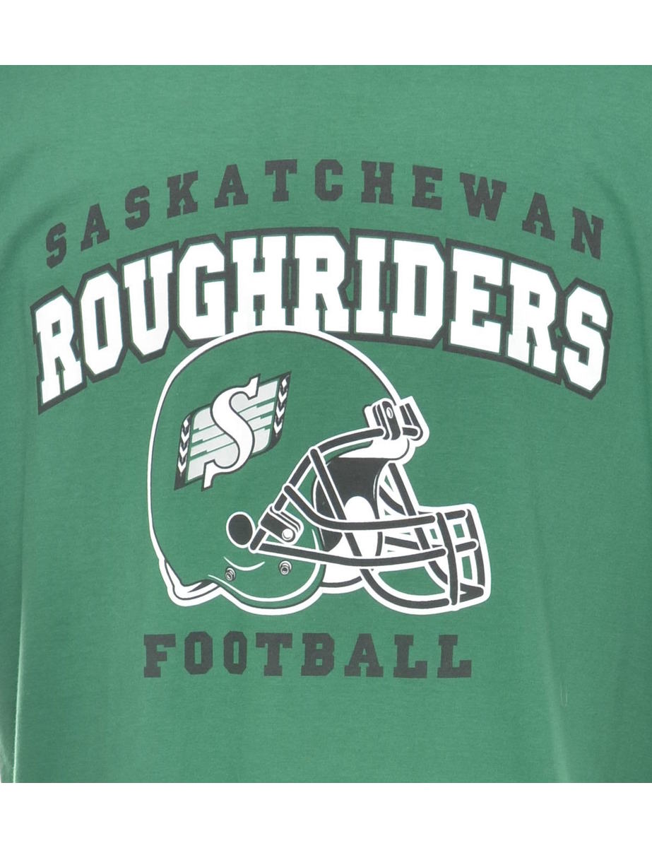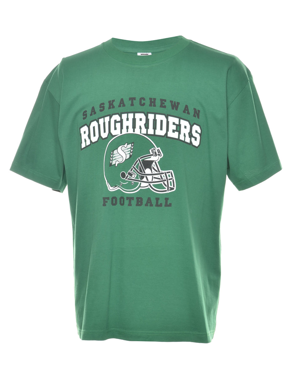 Vintage Roughriders Football Green, White & Black Printed Sports T-shirt - M
