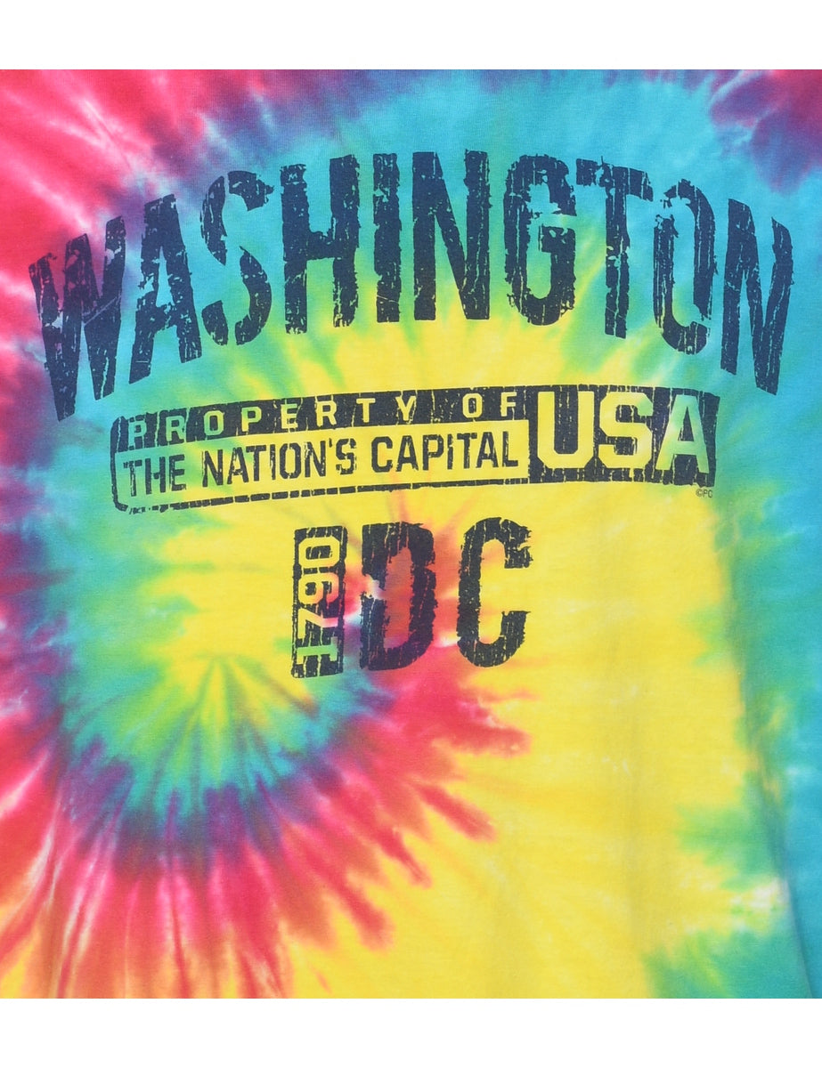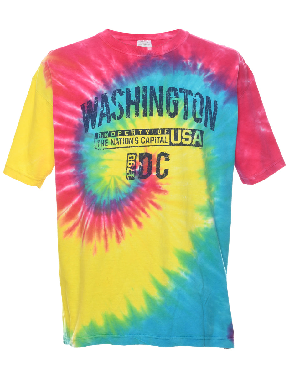Tie dyed multi-colour washington t-shirt with a round neck.