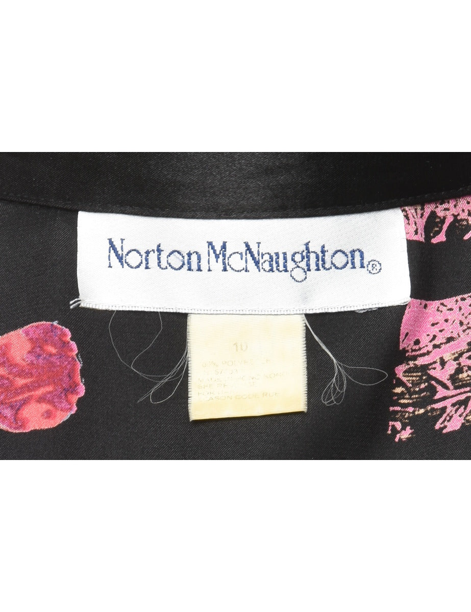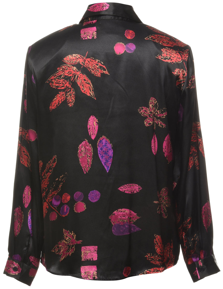 Foliage blouse in black with a classic collar and removable shoulder pads.