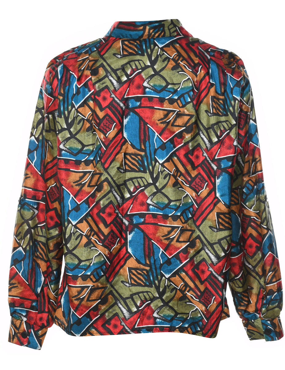 Long sleeved blouse in multi-colour with a revere front and removable shoulder pads.