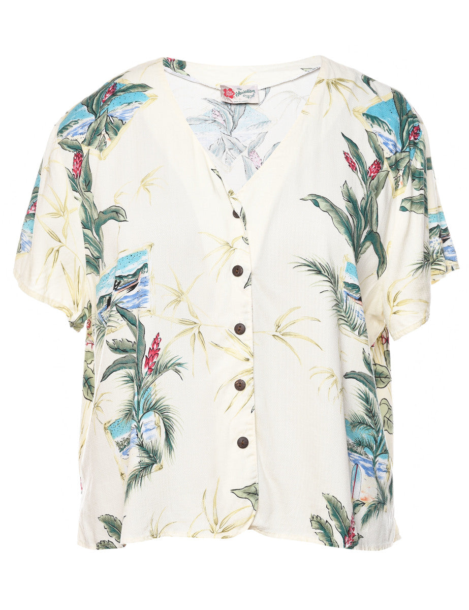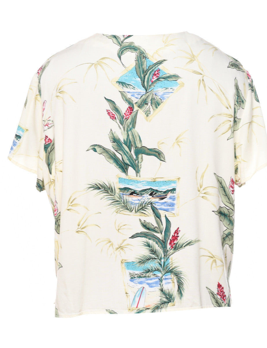 Floral hawaiian shirt. Comes in off white with a v-neck.