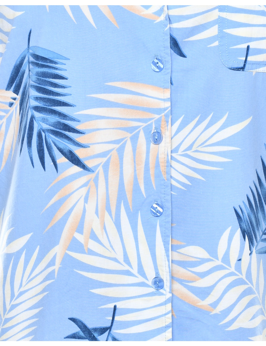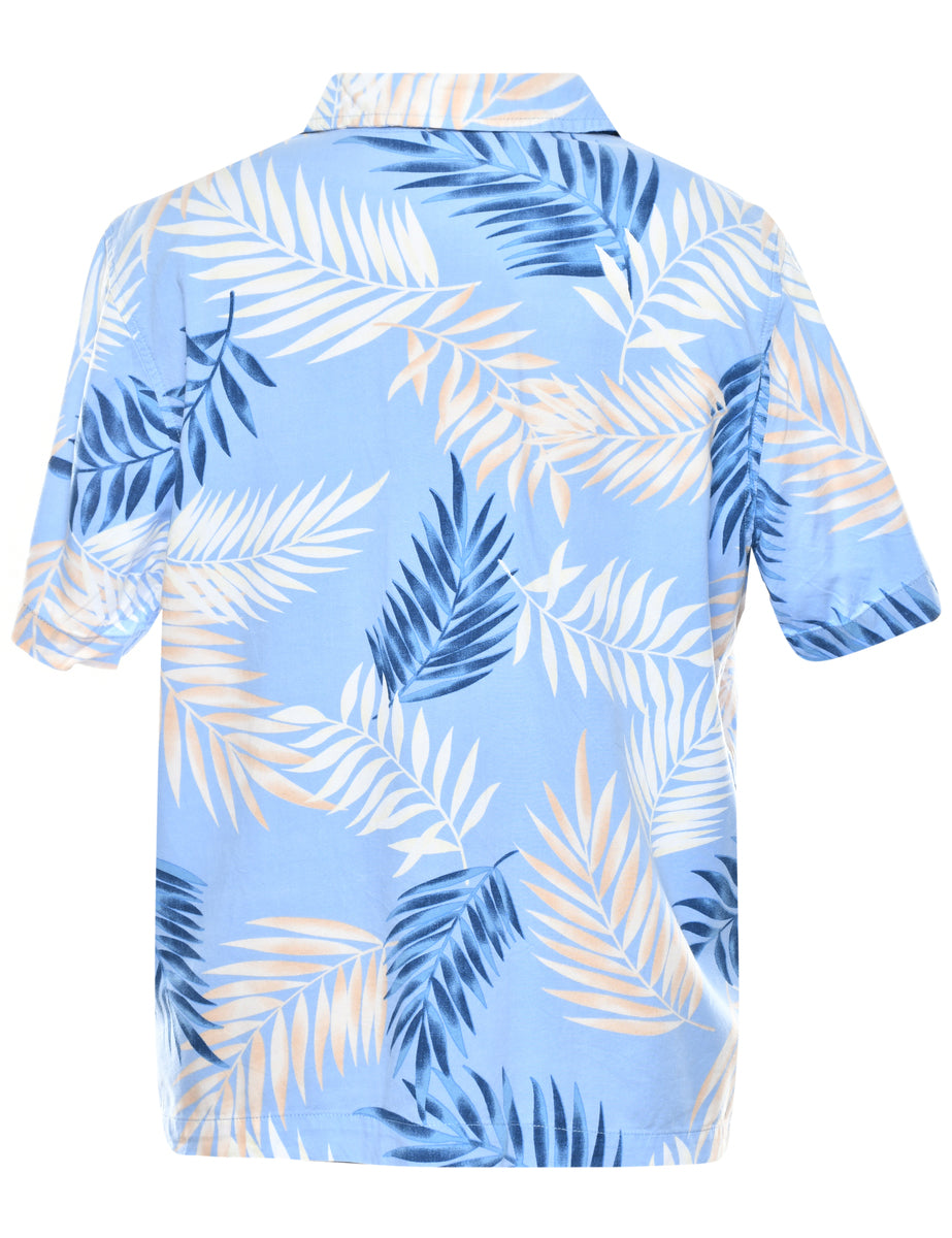 Foliage hawaiian shirt comes in blue with a revere front and one pocket.