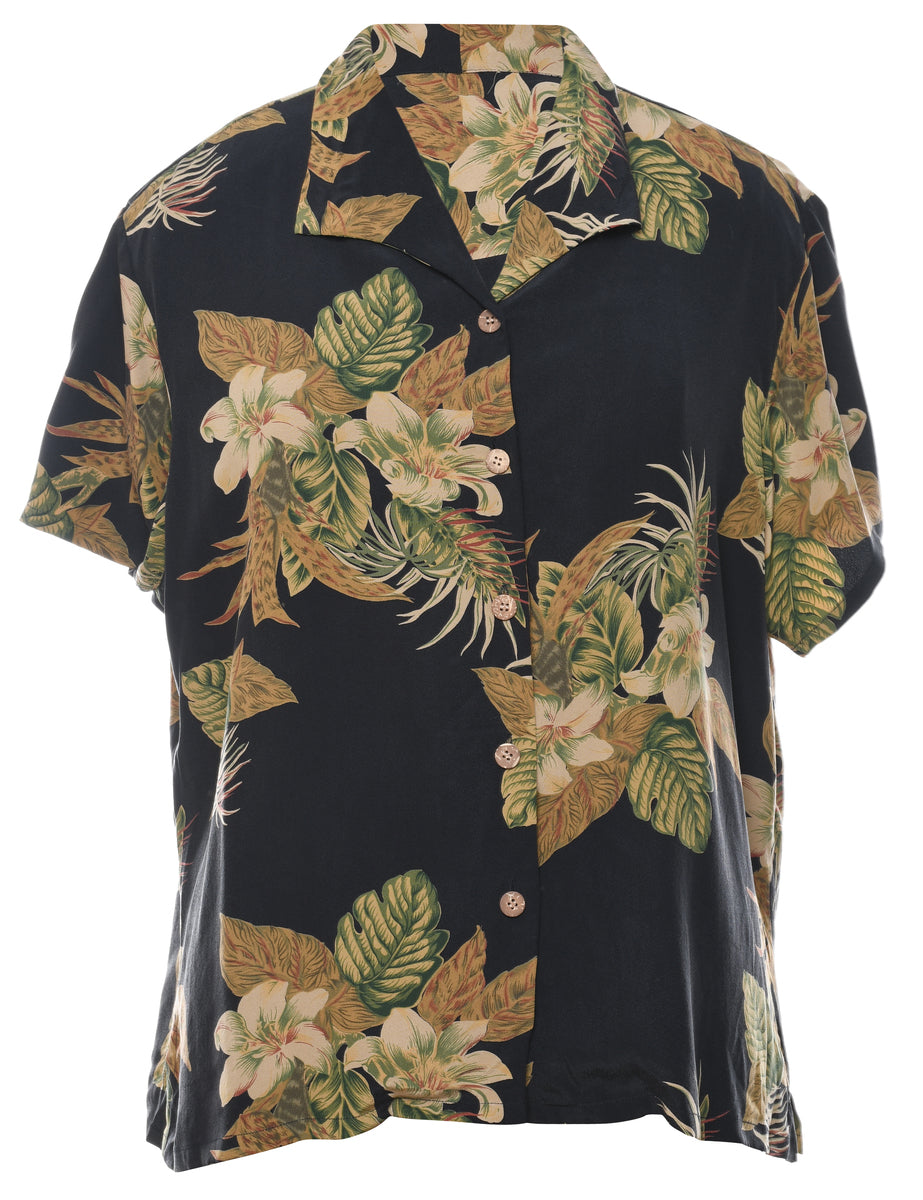 Vintage Foliage Print Hawaiian Shirt - L