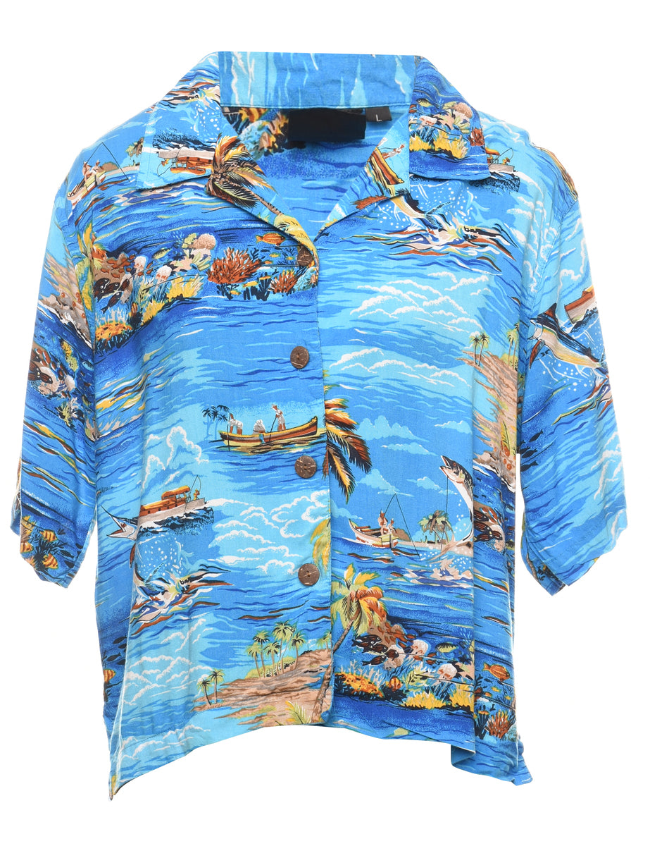 Hawaiian shirt with tropical print. Comes in multi-colour with a revere front and a button front.