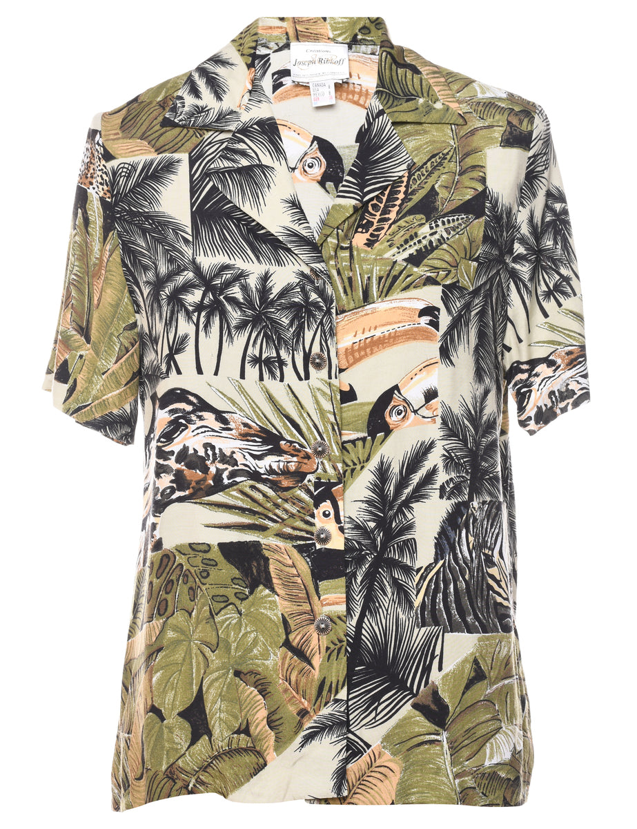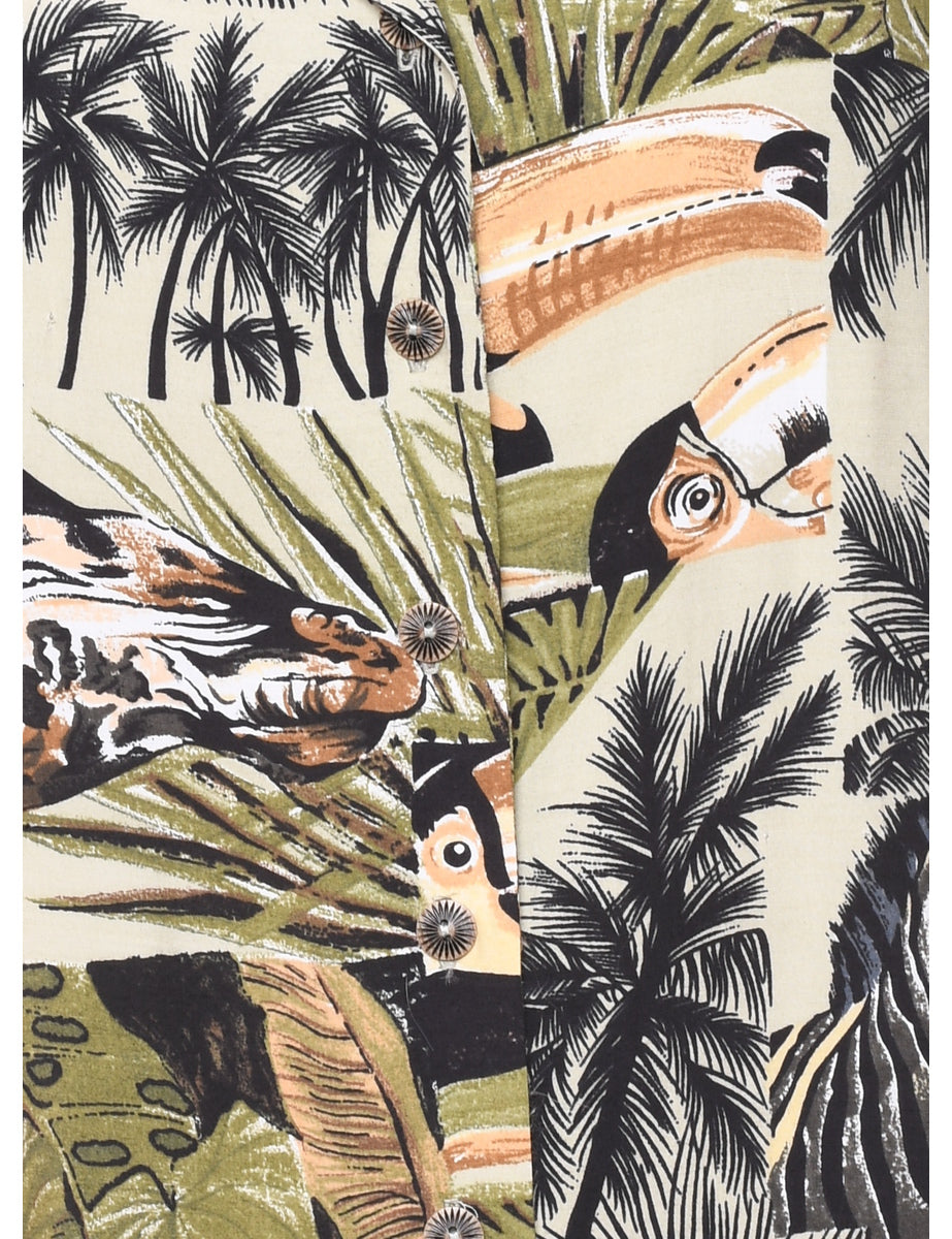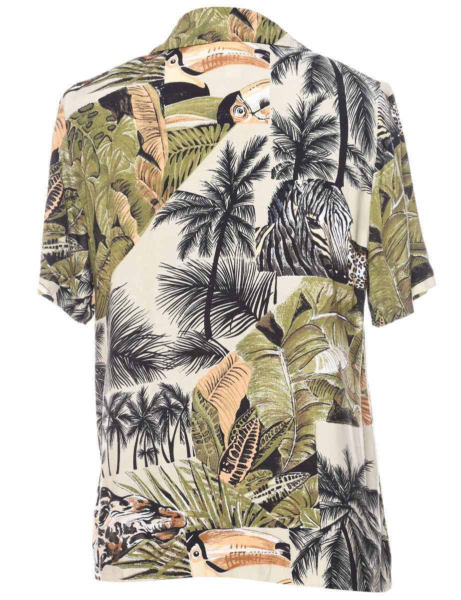 Vintage Tropical Print Hawaiian Shirt - M