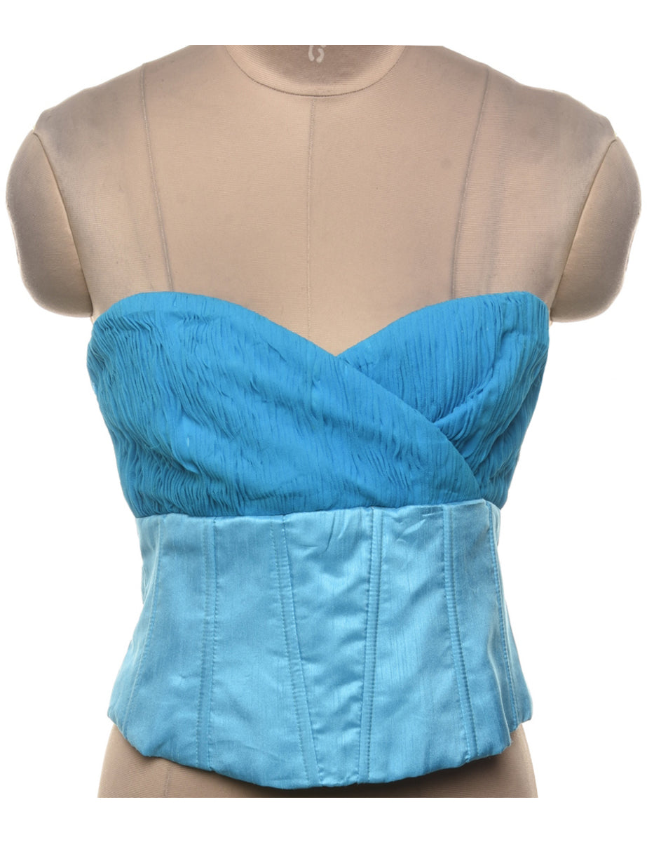 Strapless evening top. Comes in blue with full lining and off the shoulder.
