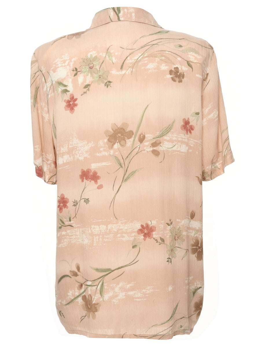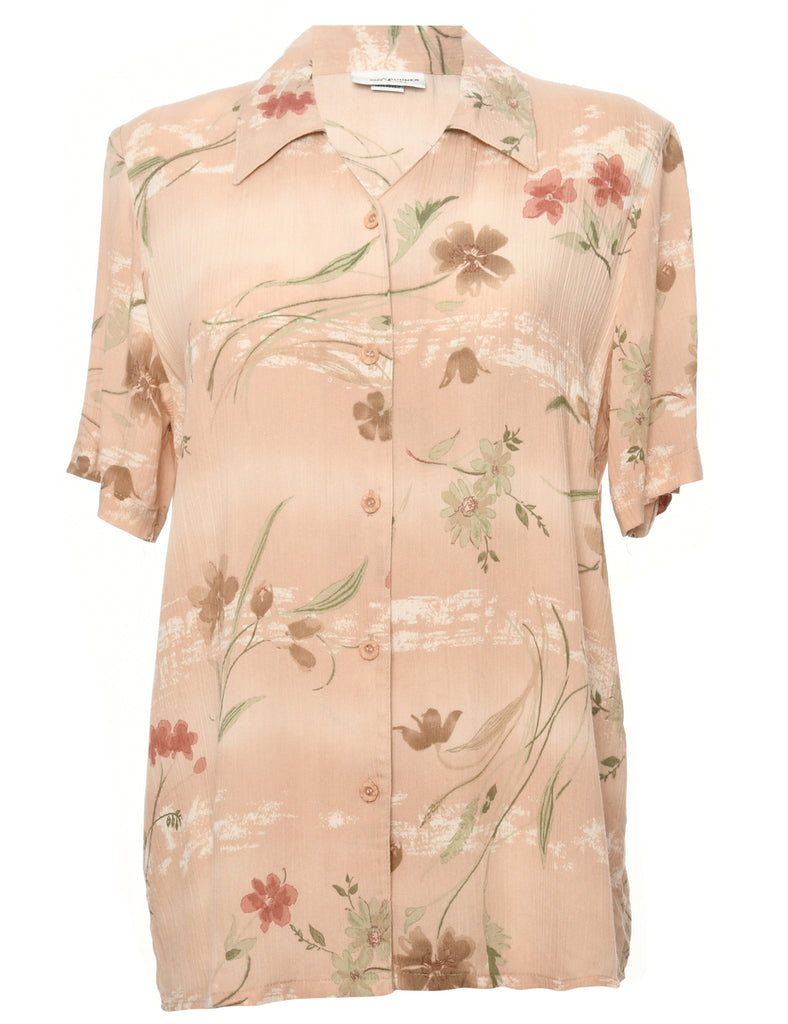 Printed shirt with floral print from Alfred Dunner comes in beige with built-in shoulder pads.