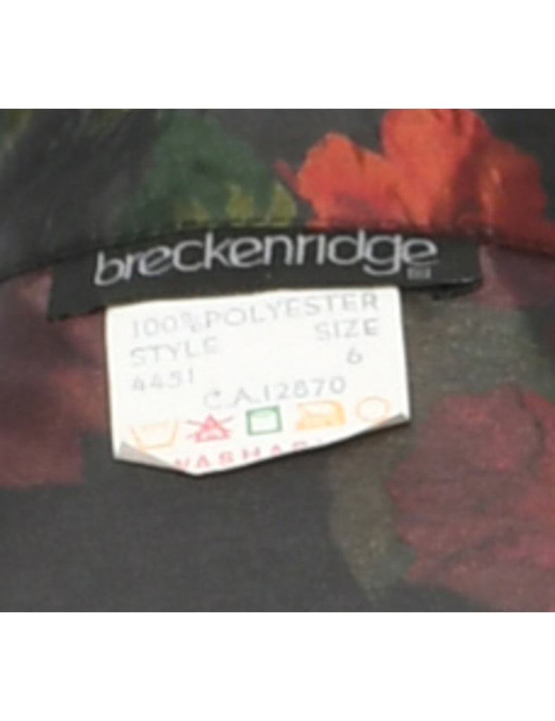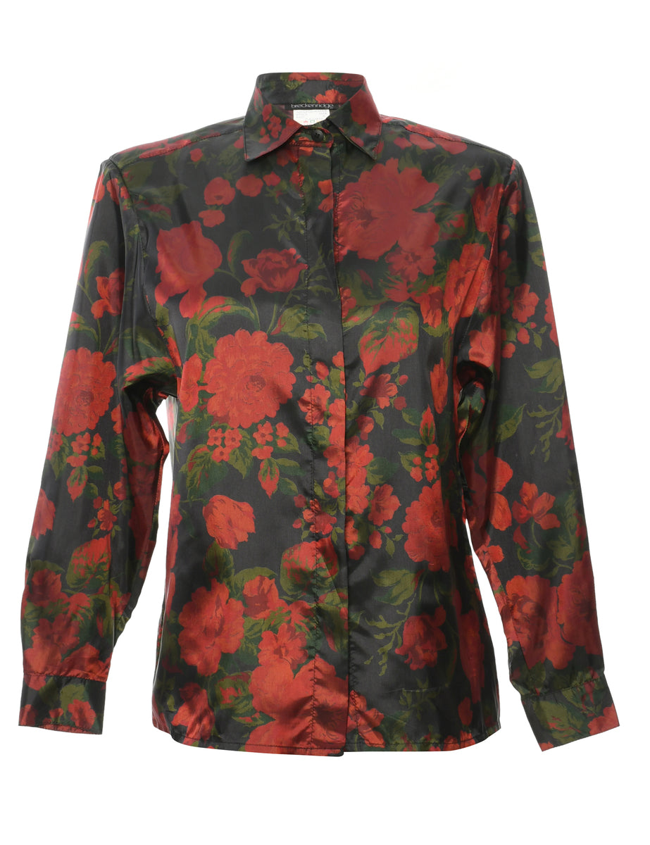 Black floral shirt with built in shoulder pads from the brand Breckenridge.