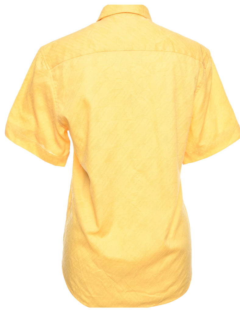 Button-front yellow shirt complete with one pocket and a classic collar.