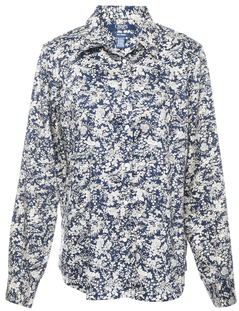 Floral navy & white Chaps long sleeve shirt complete with a classic collar.