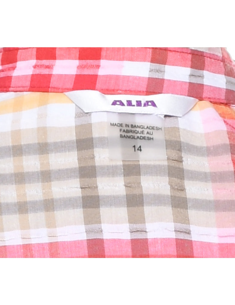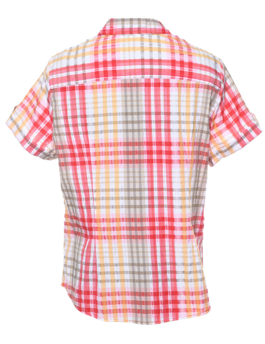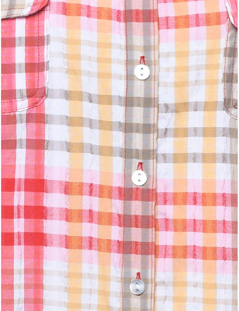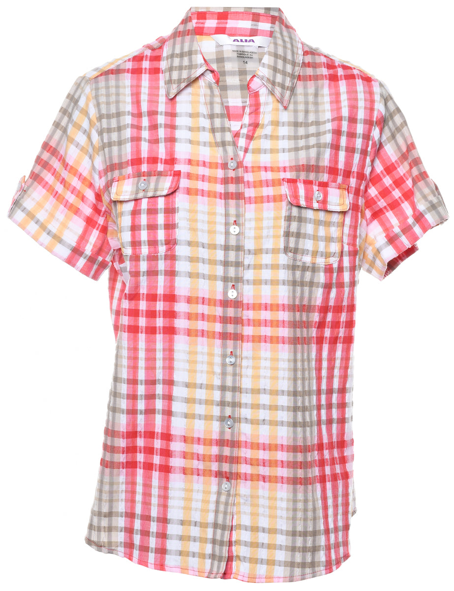 Checked Pattern Pink & Orange Short-Sleeve Shirt - L