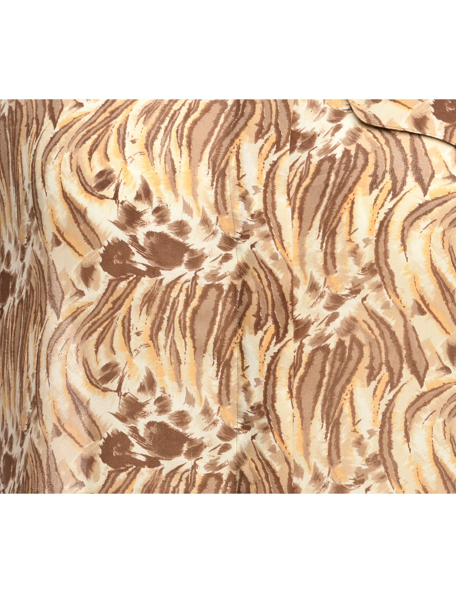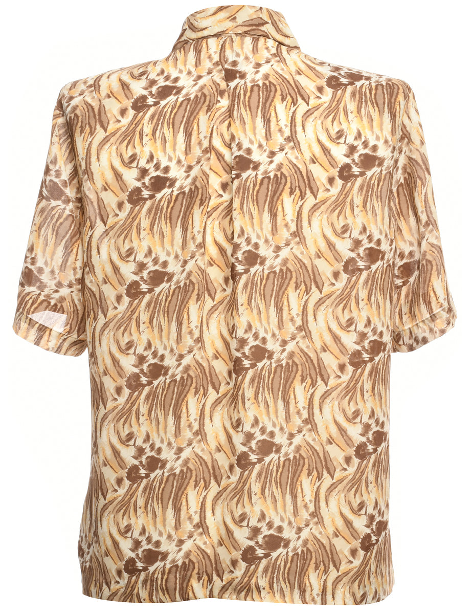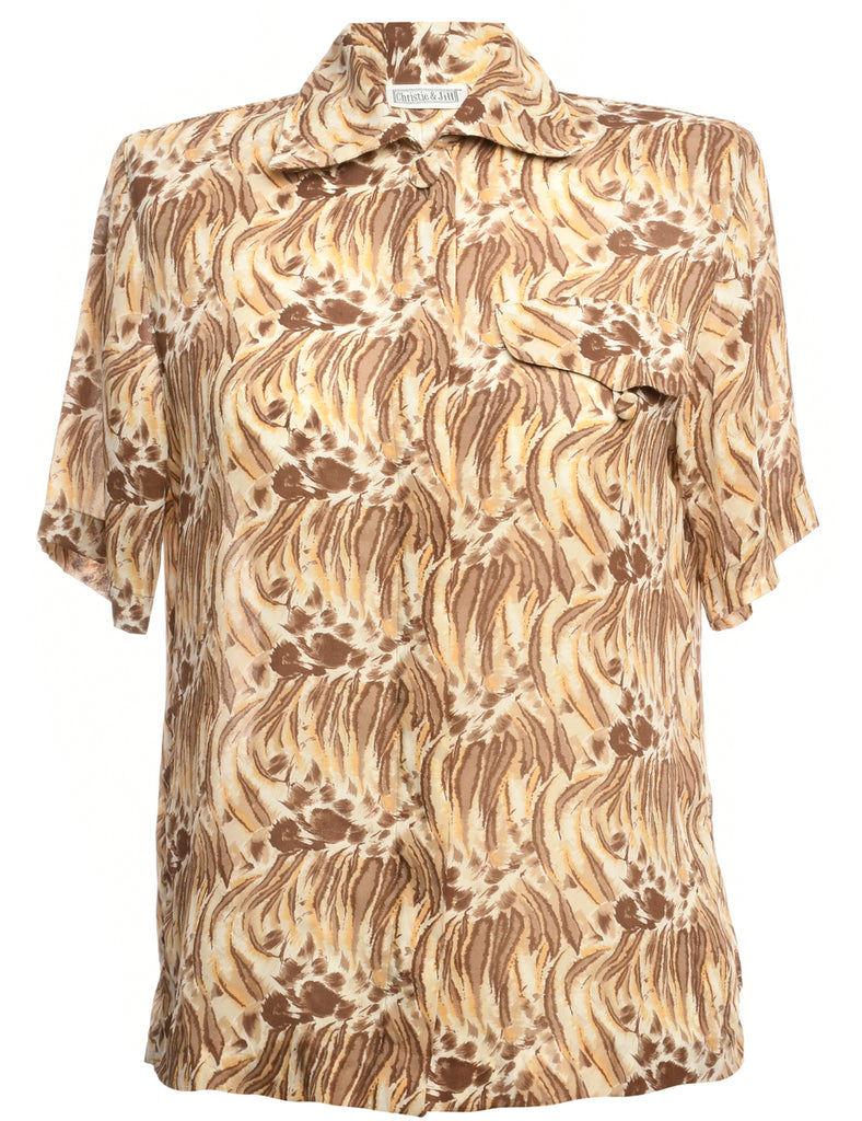 Foliage shirt comes in brown with one pocket and built-in shoulder pads.