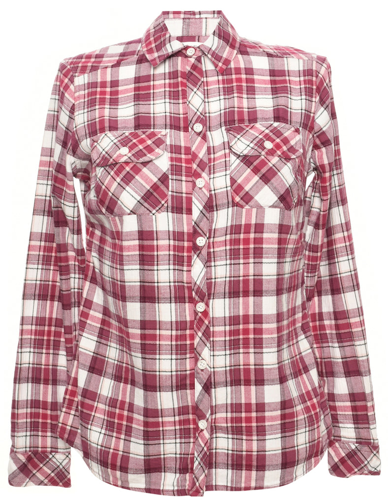 Croft & Barrow flannel checked shirt in purple & white with buttoned pockets.