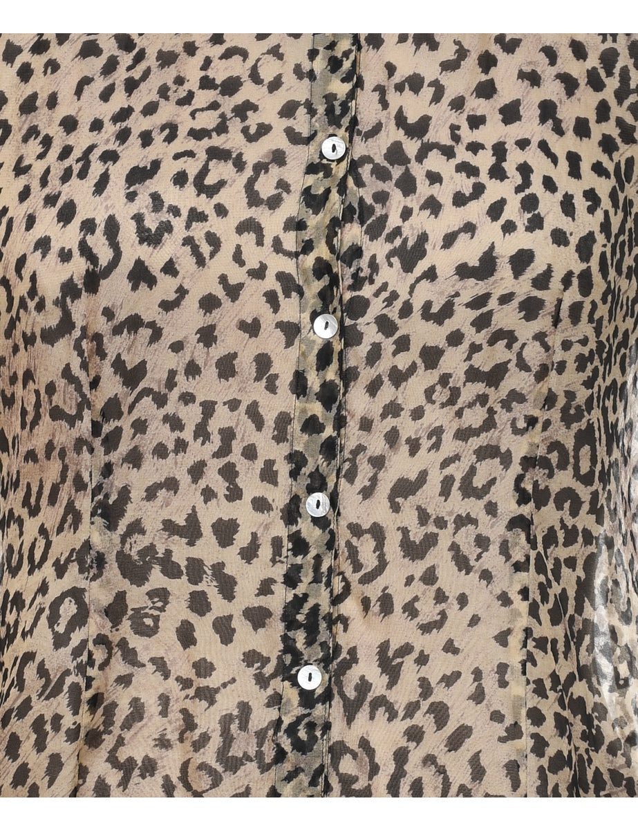 Leopard Print Silk Shirt - L