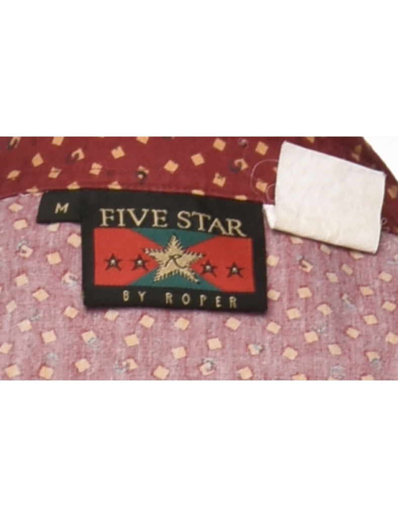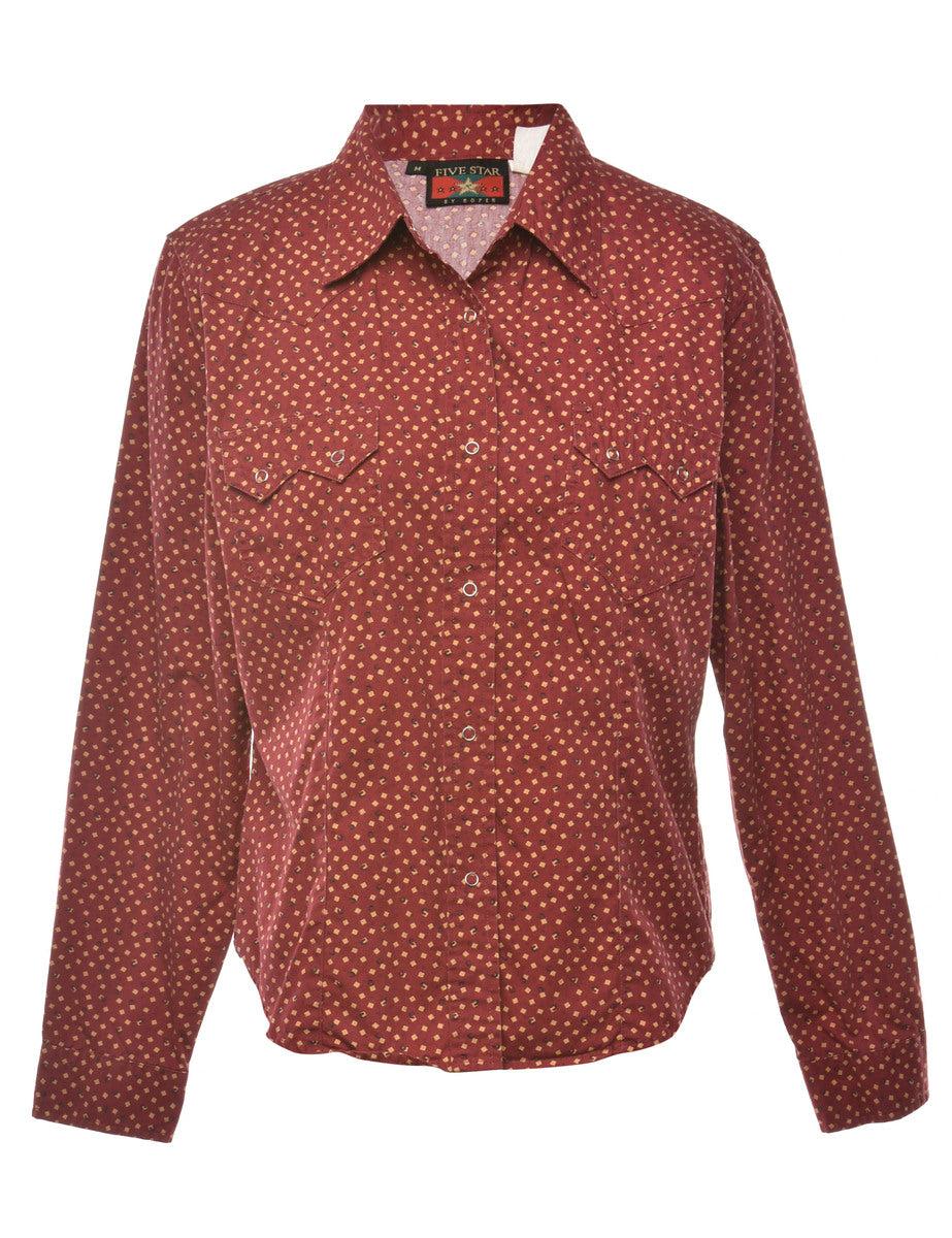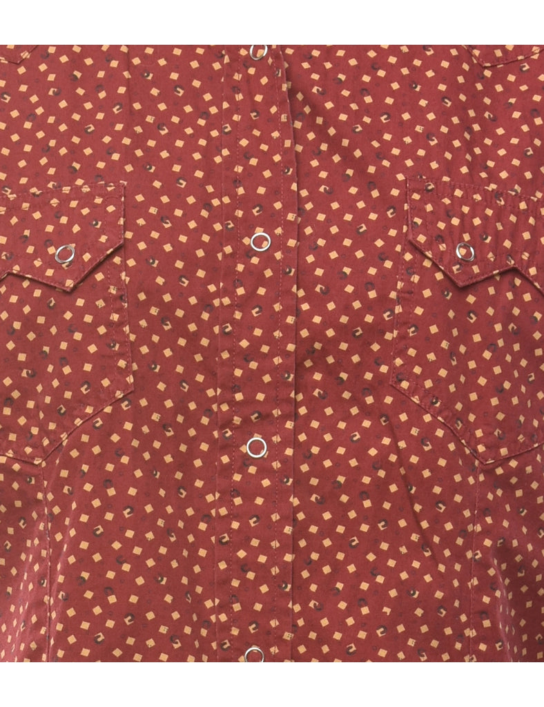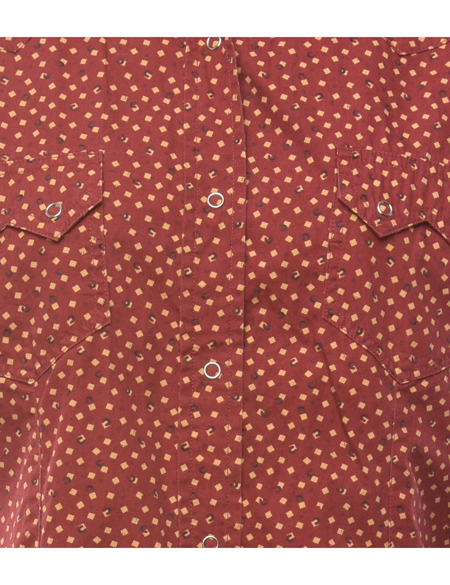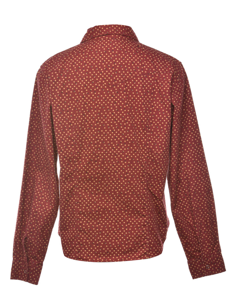 Long sleeved shirt with geometric print. Comes in red with yoke detail and flap pockets.