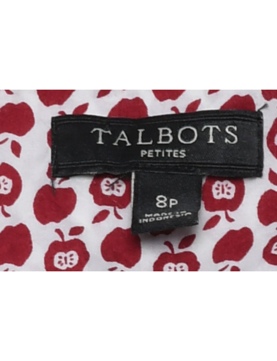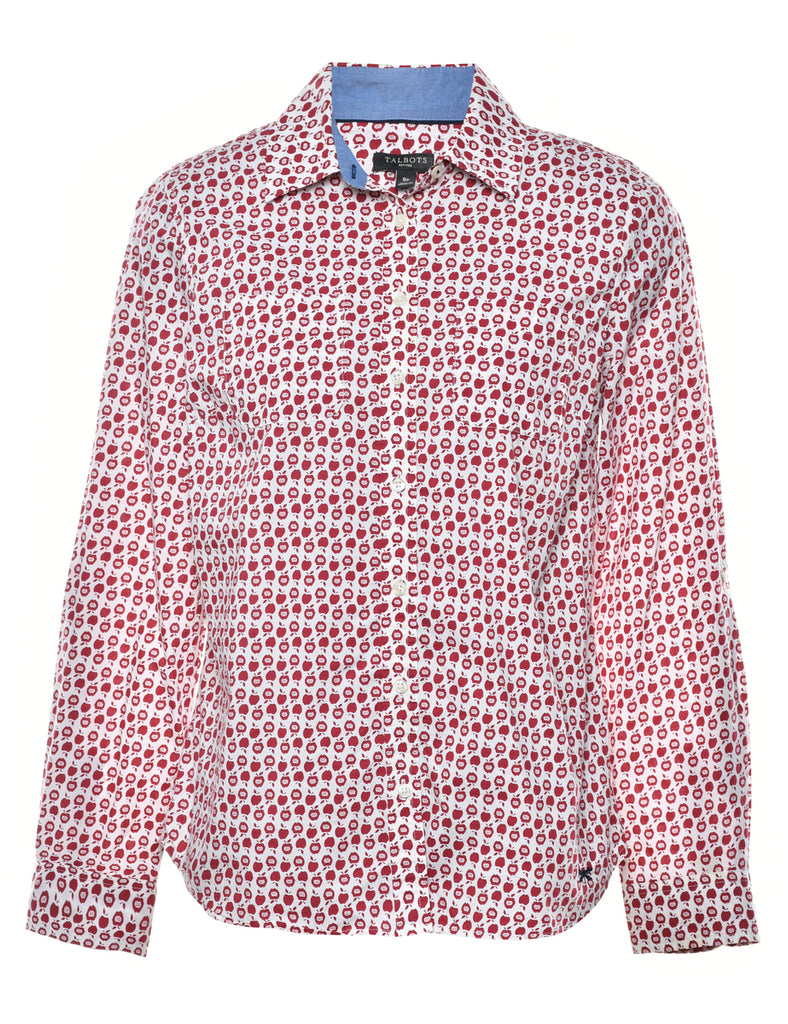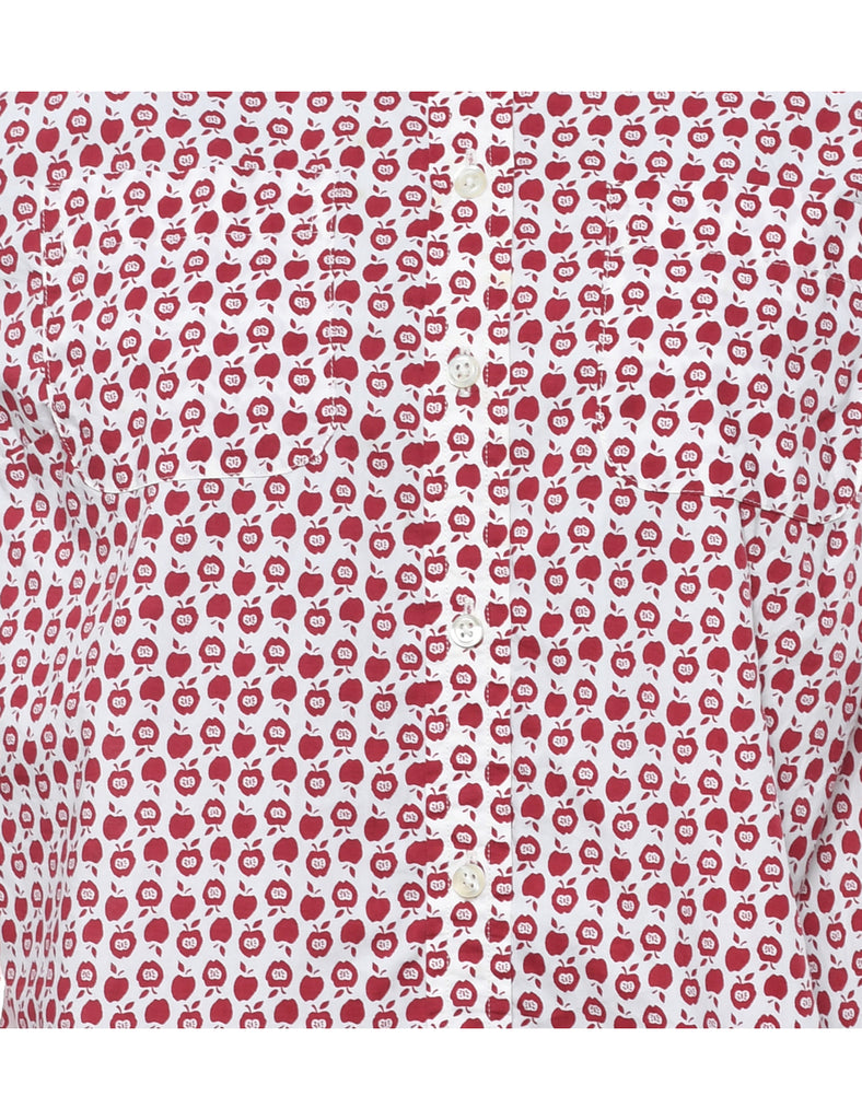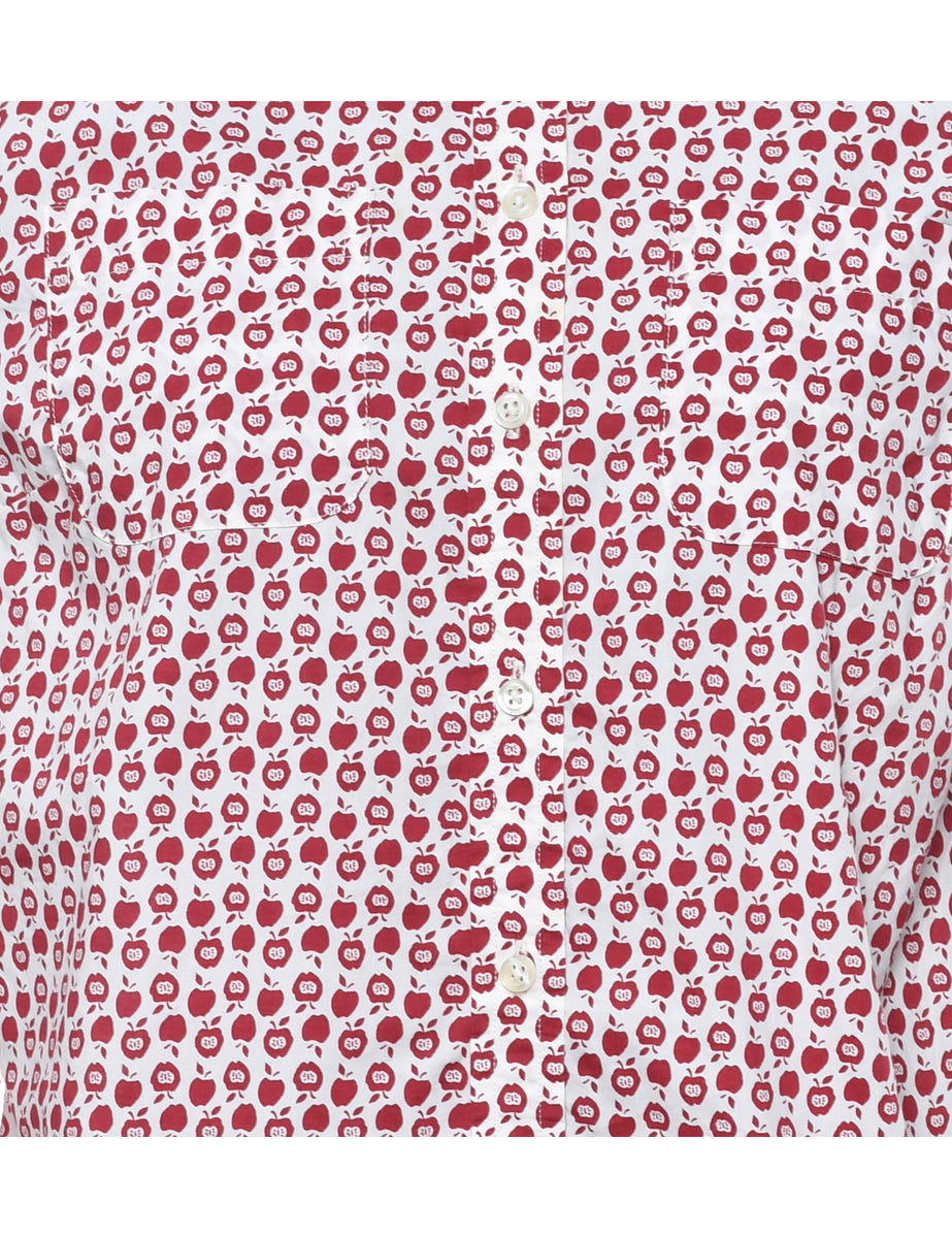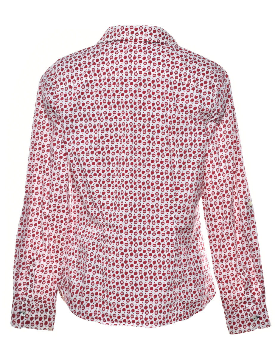 Novelty print shirt in white & red.