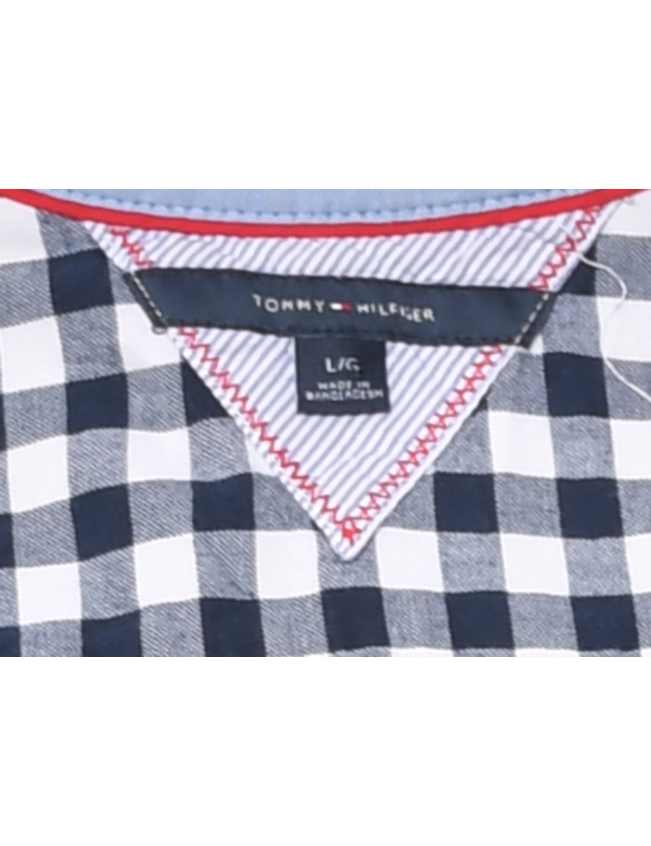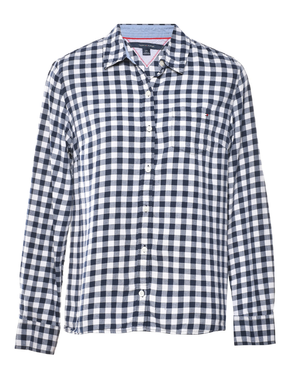 Long sleeved shirt with gingham pattern from Tommy Hilfiger. Comes in navy & white.