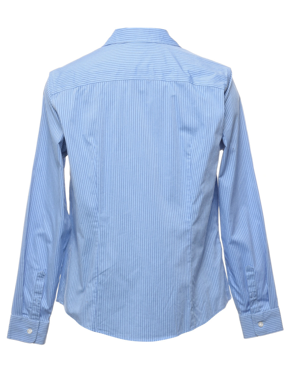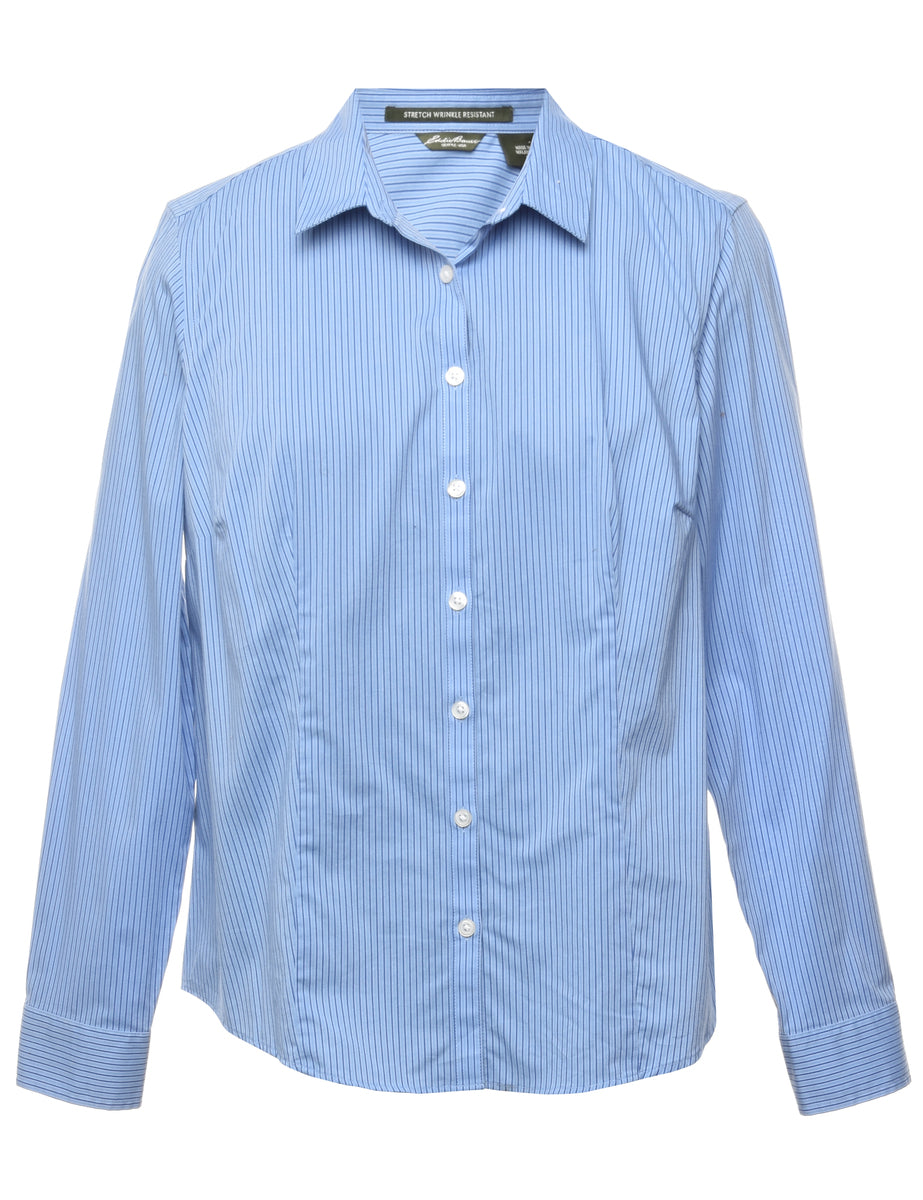 Striped shirt in blue with a classic collar and a button front. From the brand Eddie Bauer.