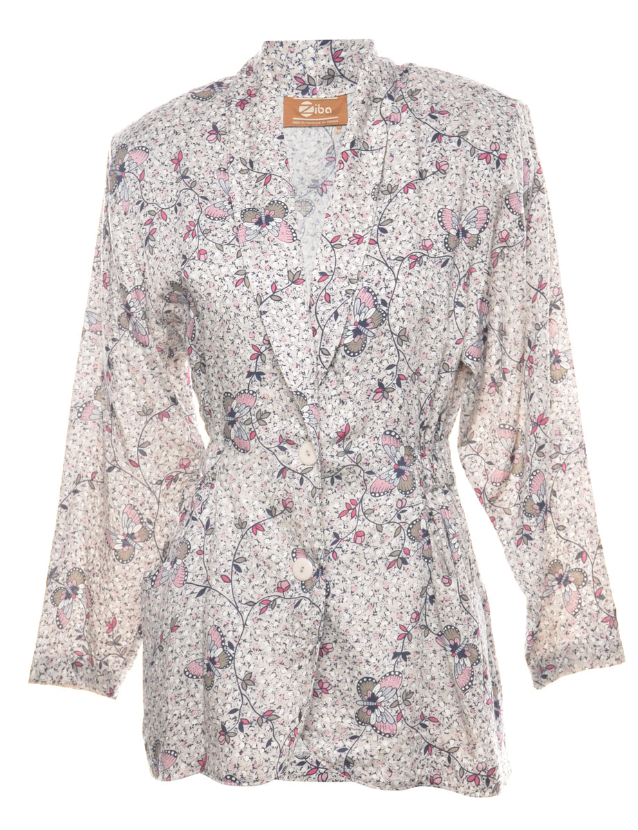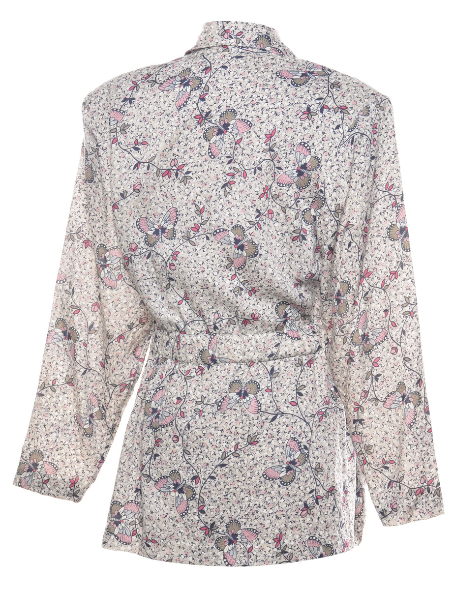 Long sleeved butterfly print blouse. Comes in light brown with removable shoulder pads.