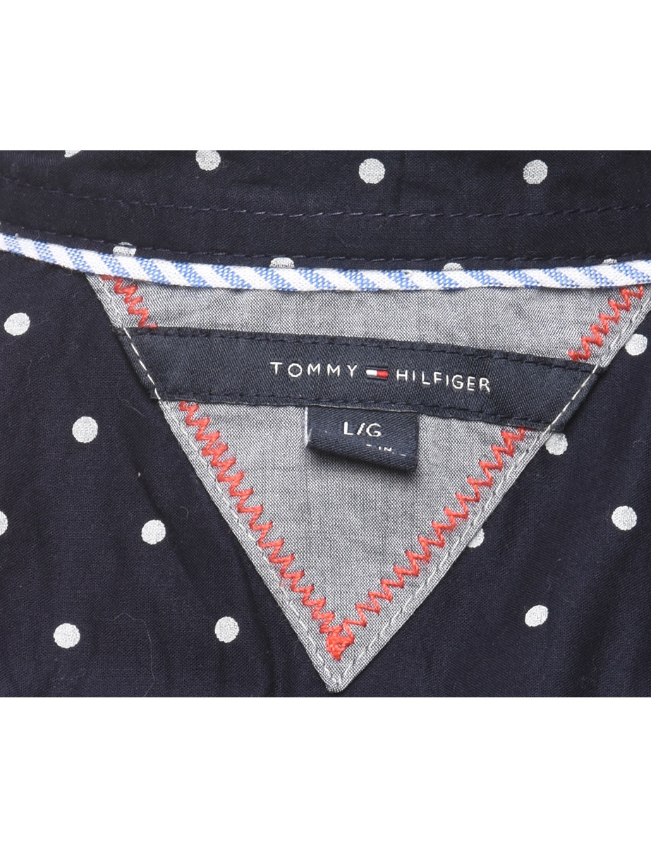 Tommy Hilfiger polka dots shirt comes in navy with a classic collar and a button front.
