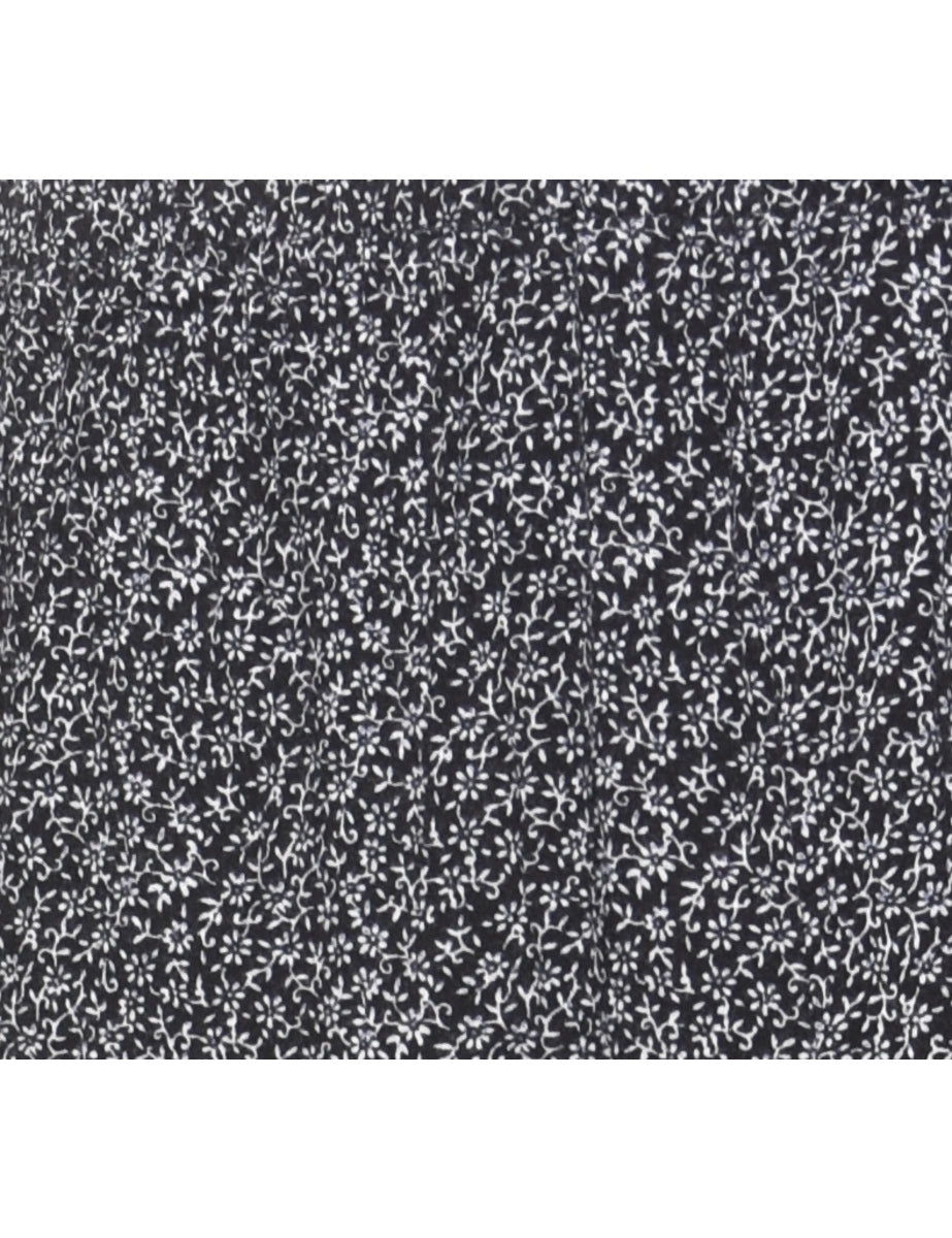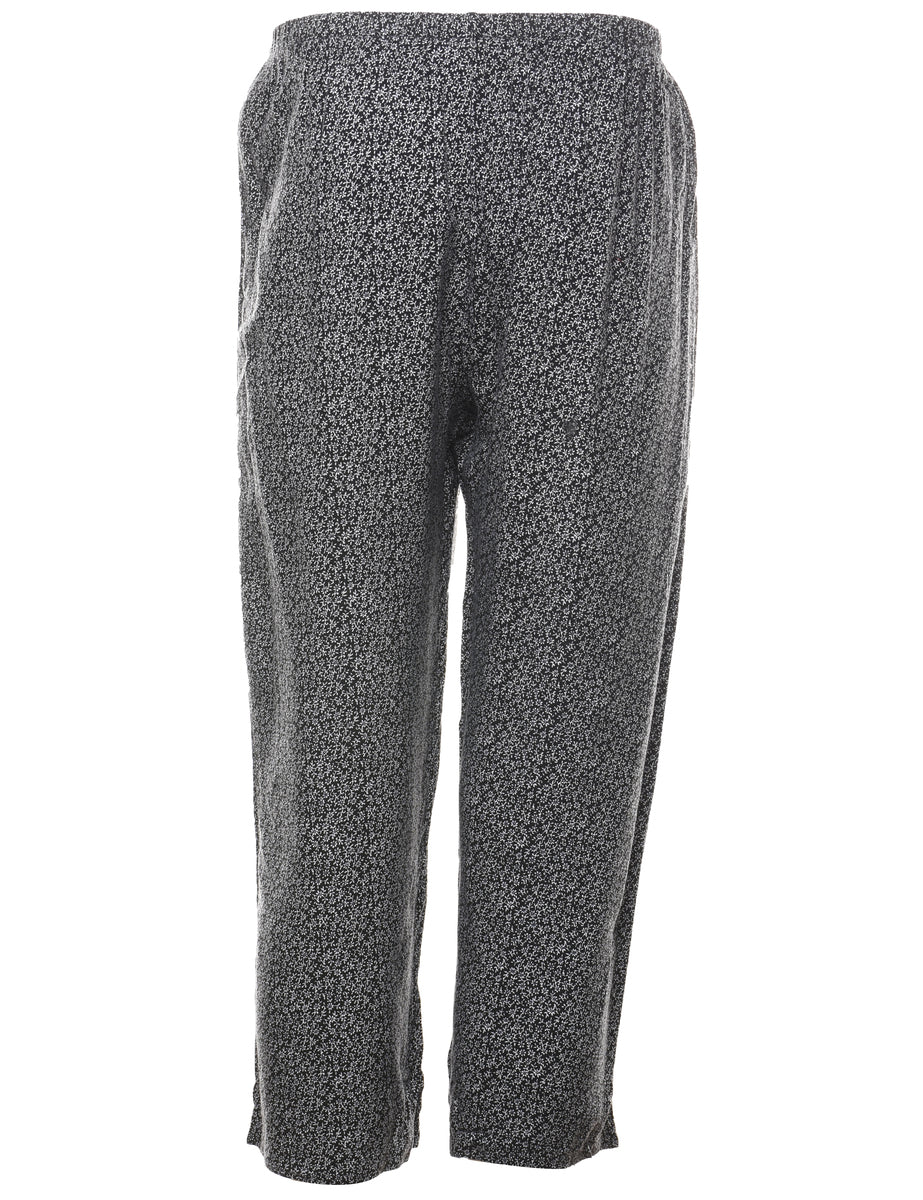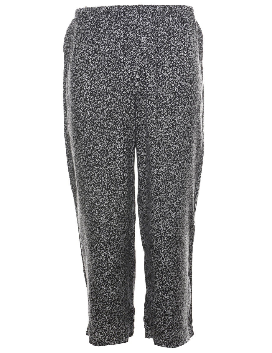 Vintage Ditsy Floral Print Black Trousers - W26 L25