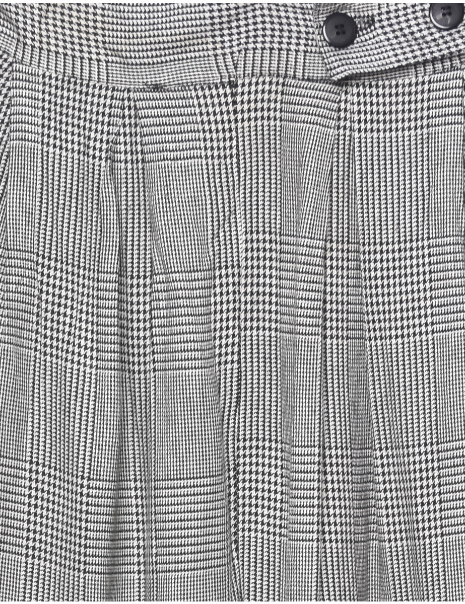 Tapered printed trousers with dogtooth checks comes in grey with pleating and multiple pockets.