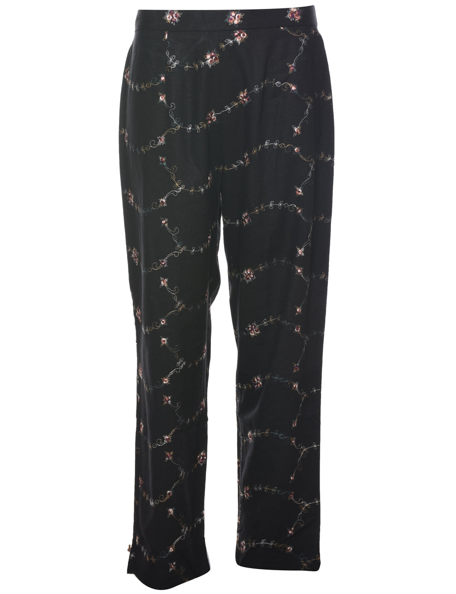 Vintage Embroidered Floral Trousers - W28 L28