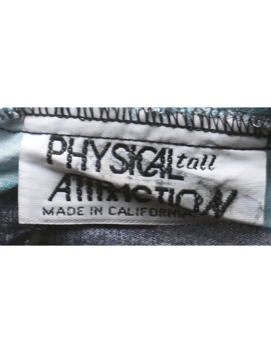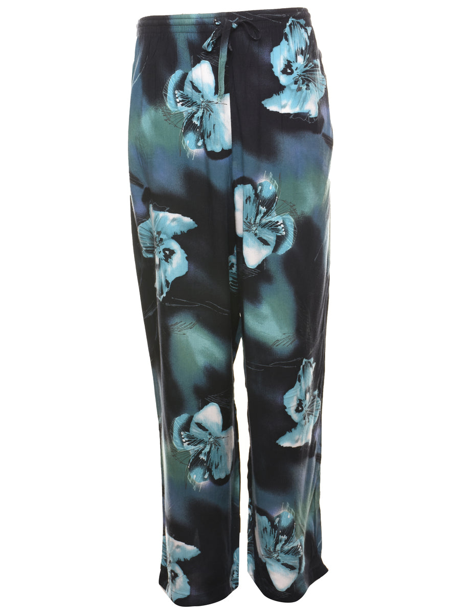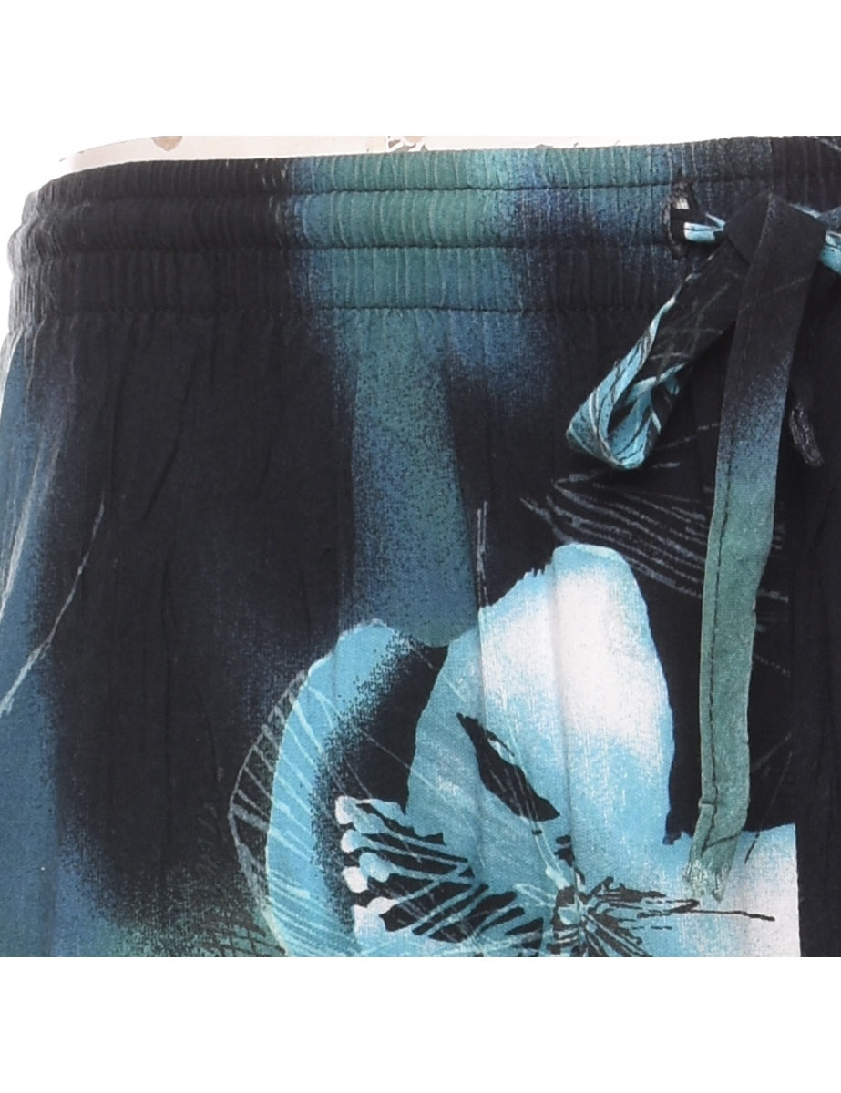 Vintage Floral Print Black & Light Blue Casual Trousers - W24 L30