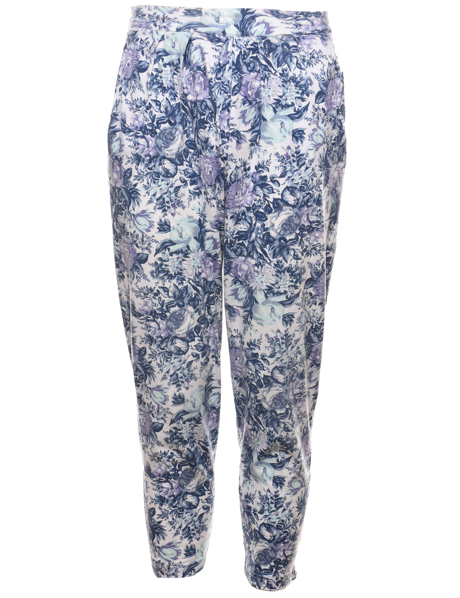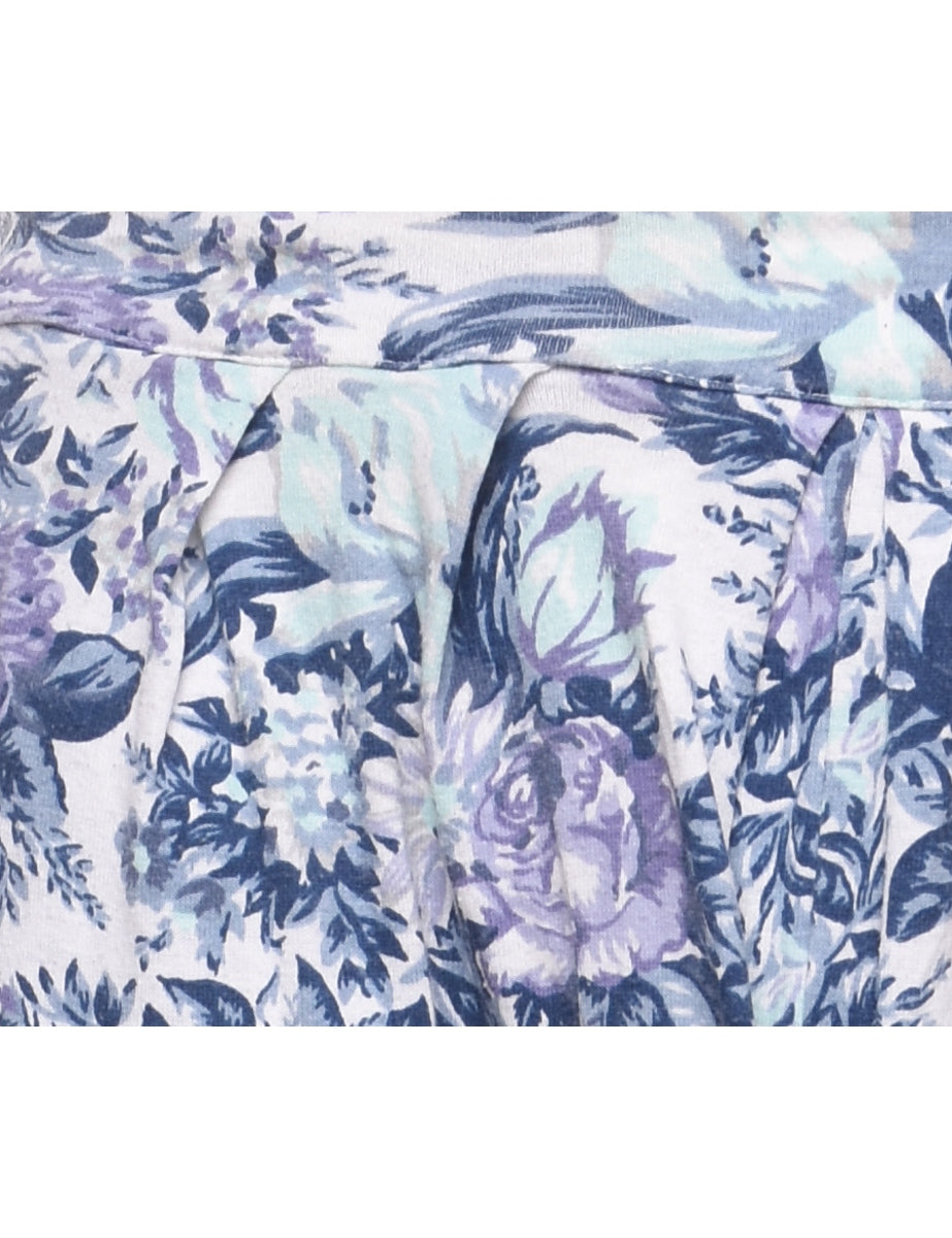 Vintage Floral Print Blue & White Trousers - W28 L26