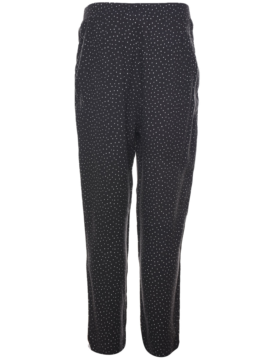 Jantzen tapered printed trousers with polka dot. Comes in black with multiple pockets and an elasticized waist.