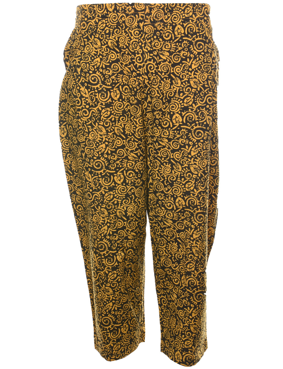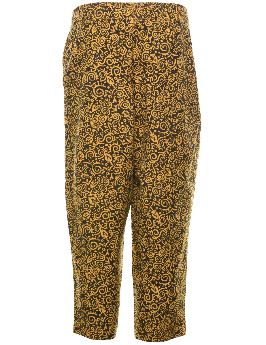 Vintage Patterned Brown & Yellow Casual Trousers - W26 L23