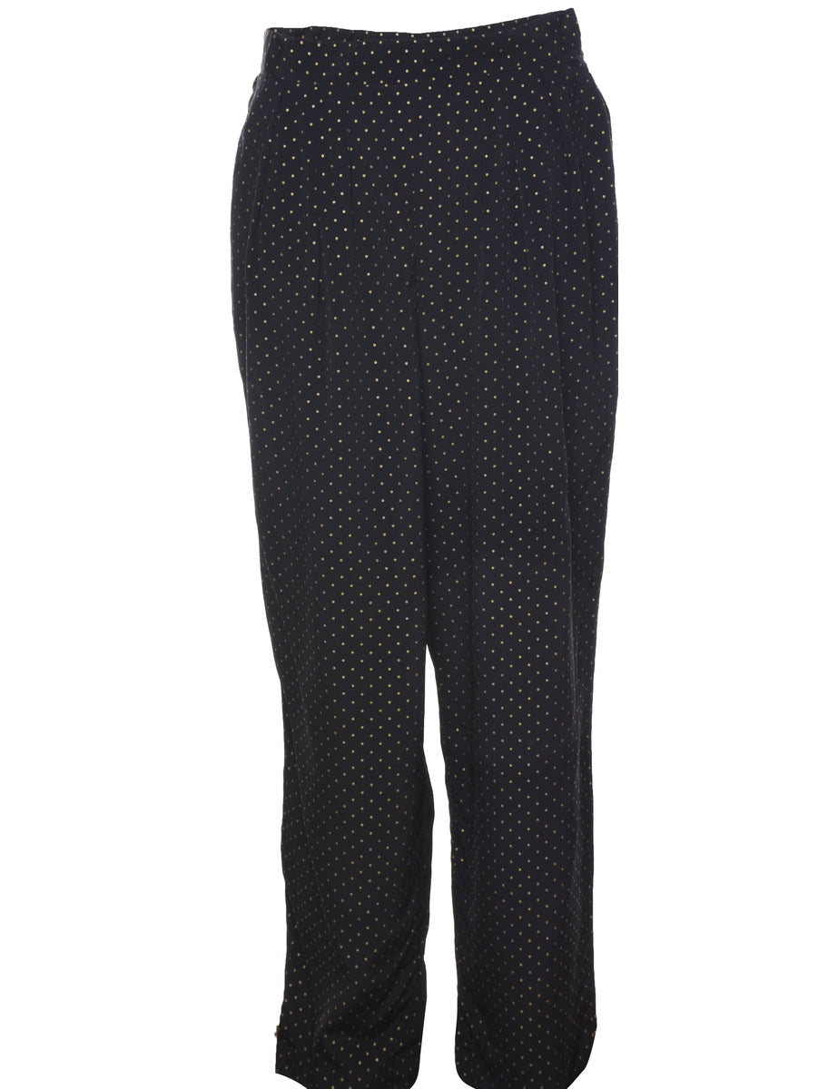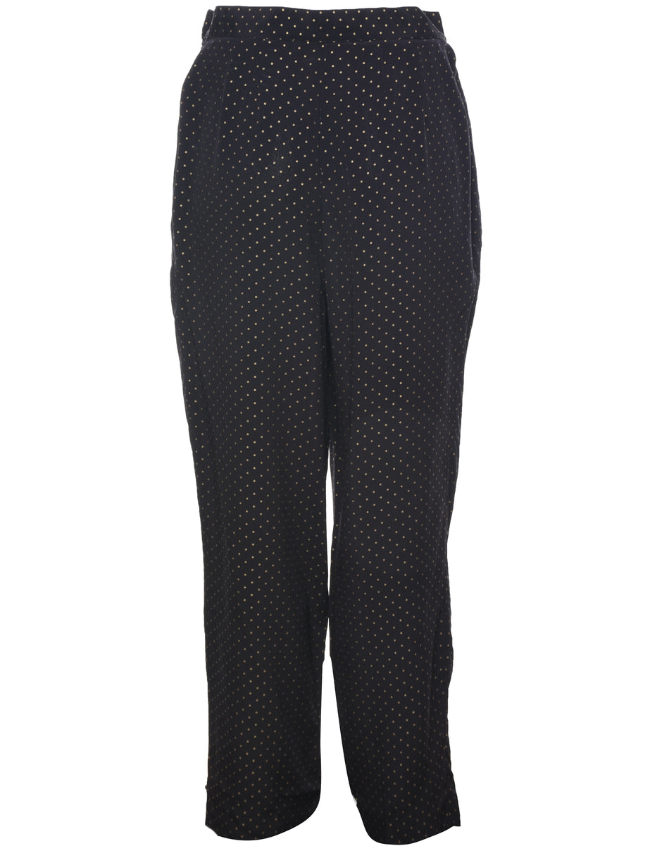 Tapered printed trousers with polka dot comes in black with pleat detail and multiple pockets.