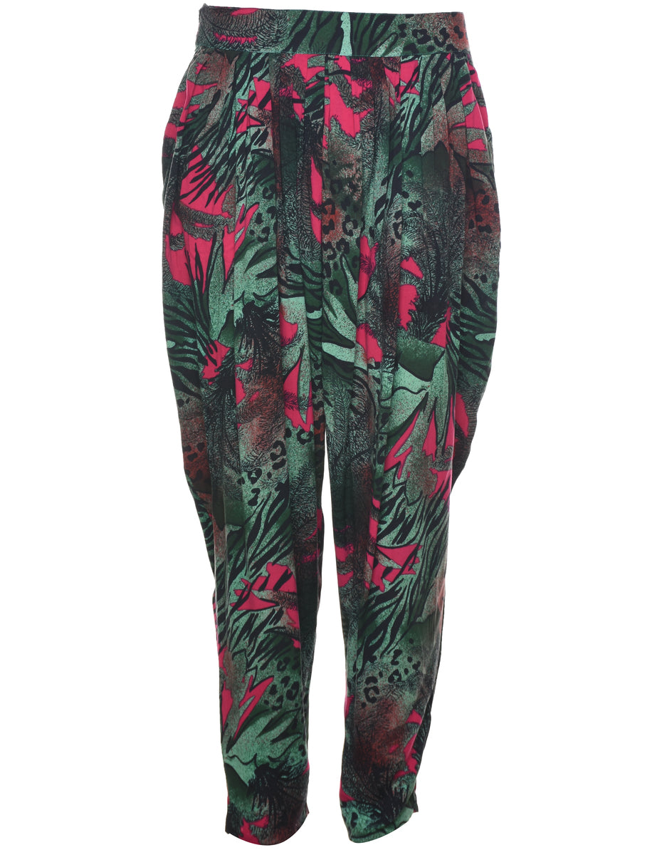 Tapered printed trousers in multi-colour with pleating and multiple pockets.