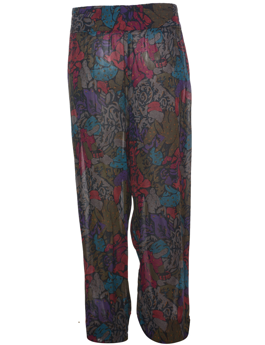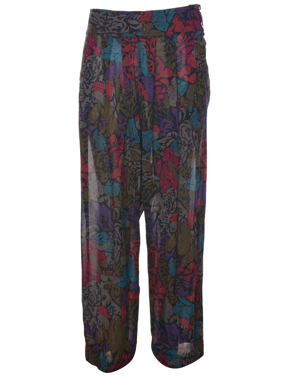 Tapered printed trousers in multi-colour with pleat detail and multiple pockets.
