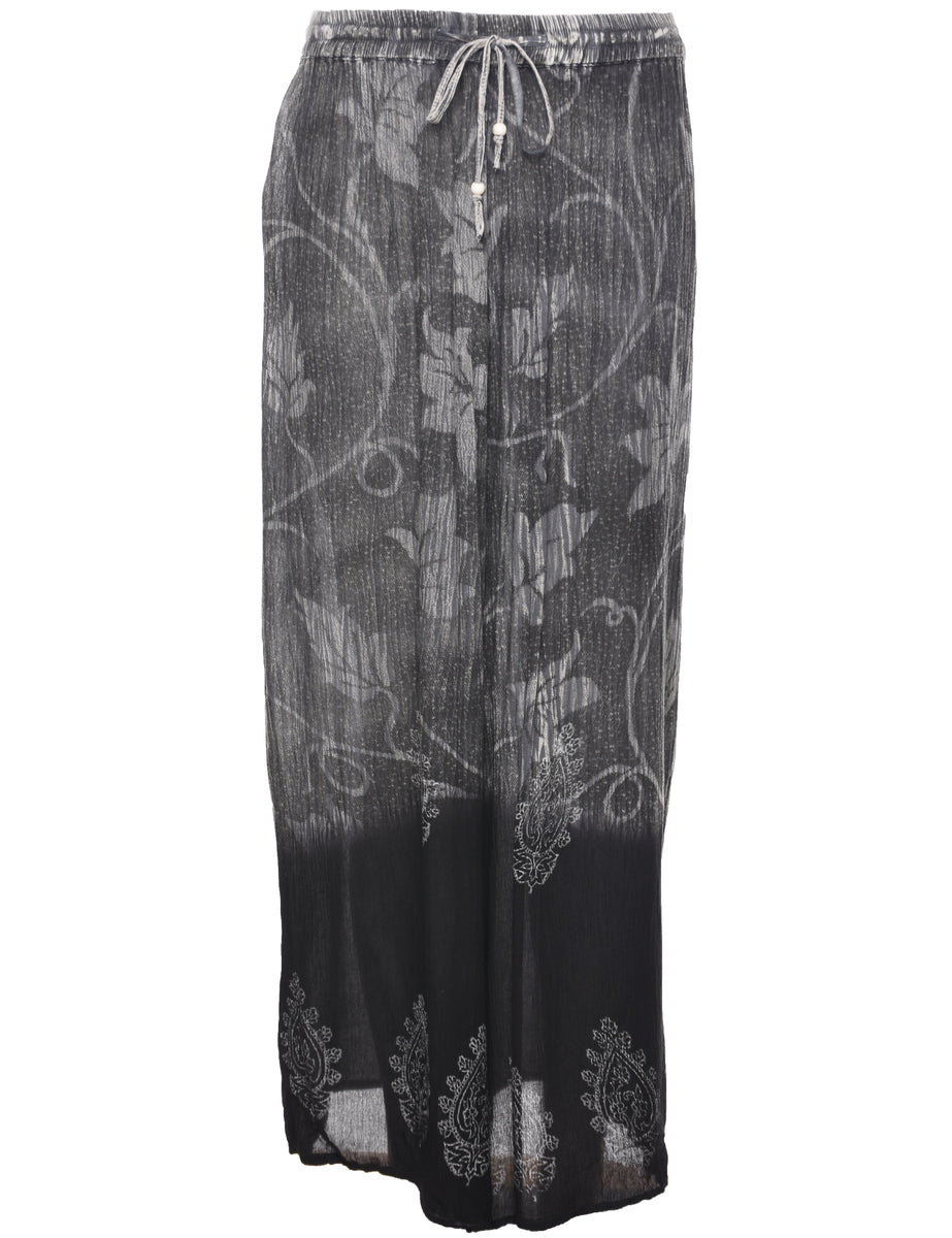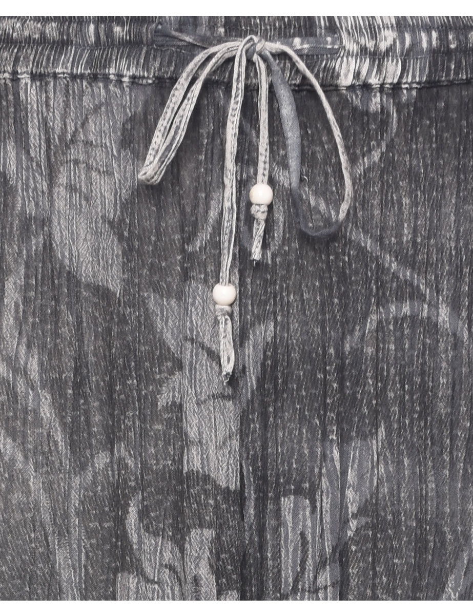 Flared leg trousers with tie-dye effect. Comes in black & grey with a drawstring waist.
