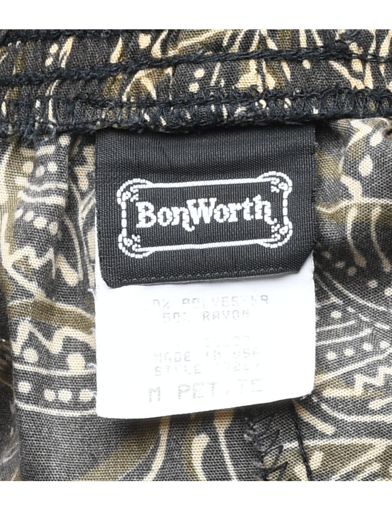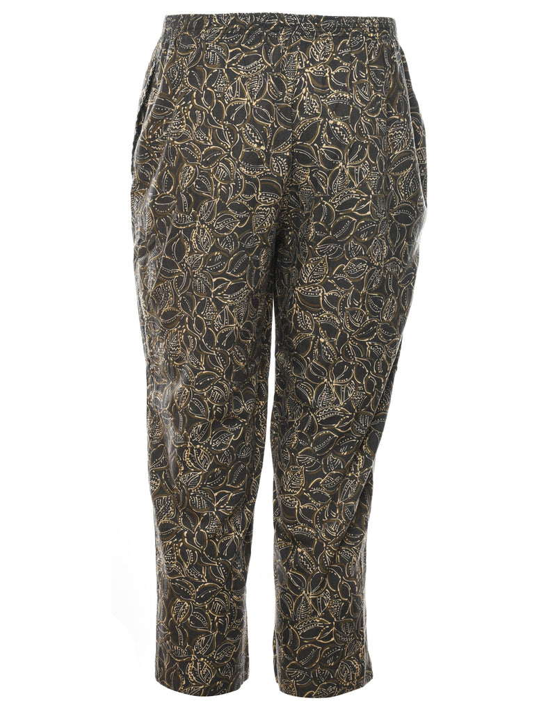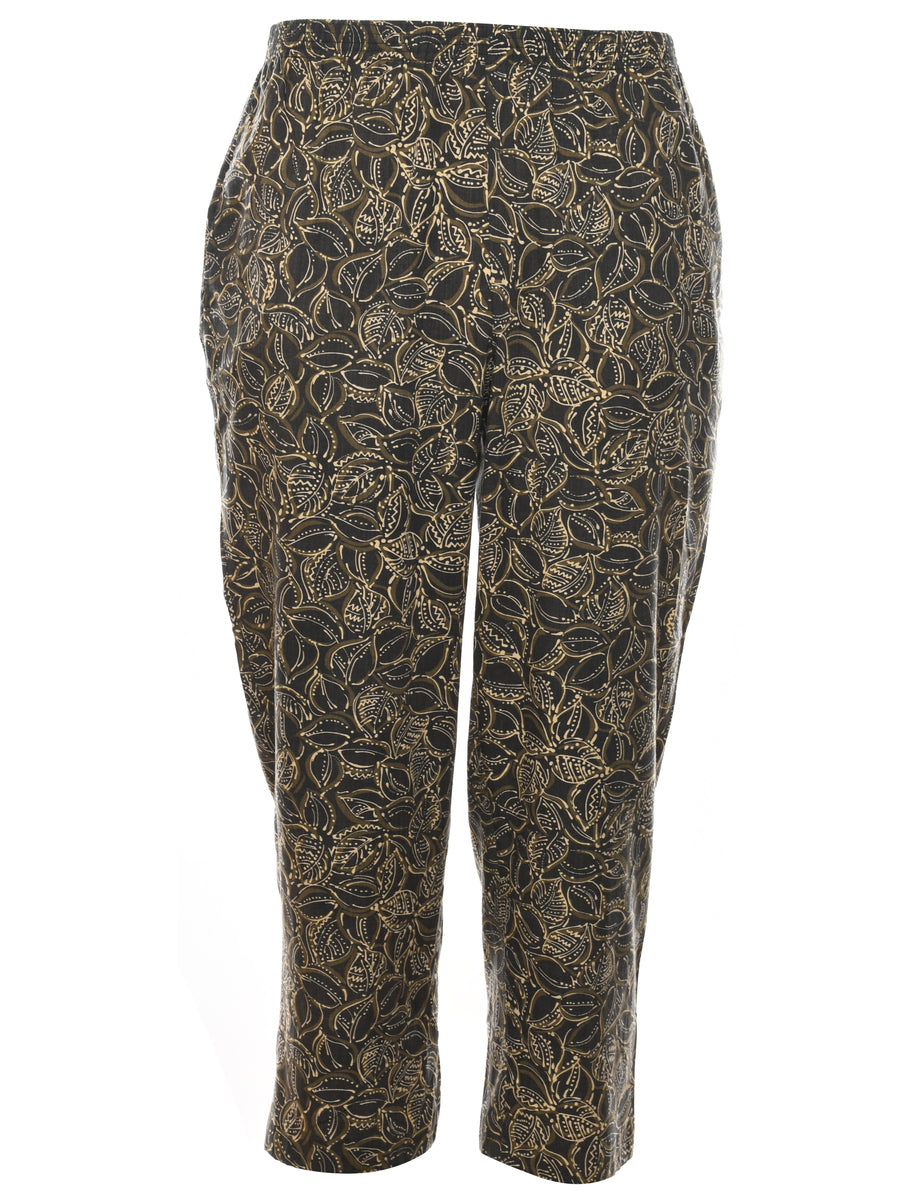 Foliage Print Black & Olive Green Cropped Tapered Trousers - W28 L24