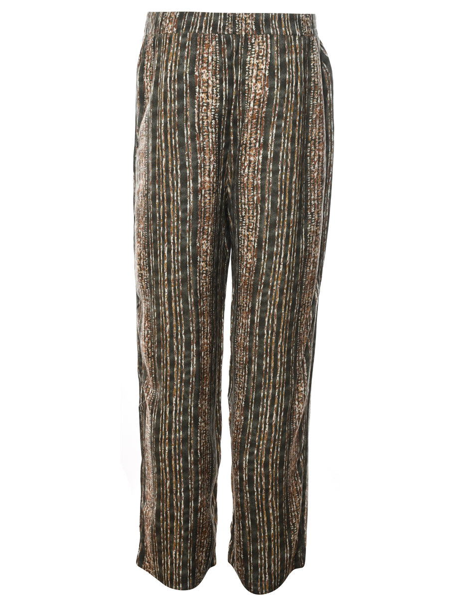 Olive Green & Light Brown Striped Trousers - W30 L28