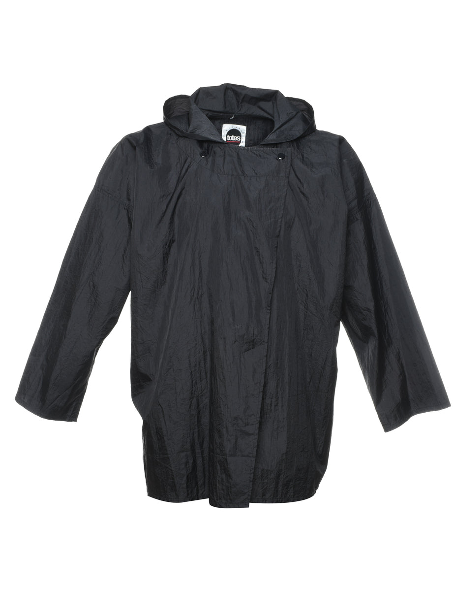 Vintage Hooded Black Classic Nylon Jacket - XL