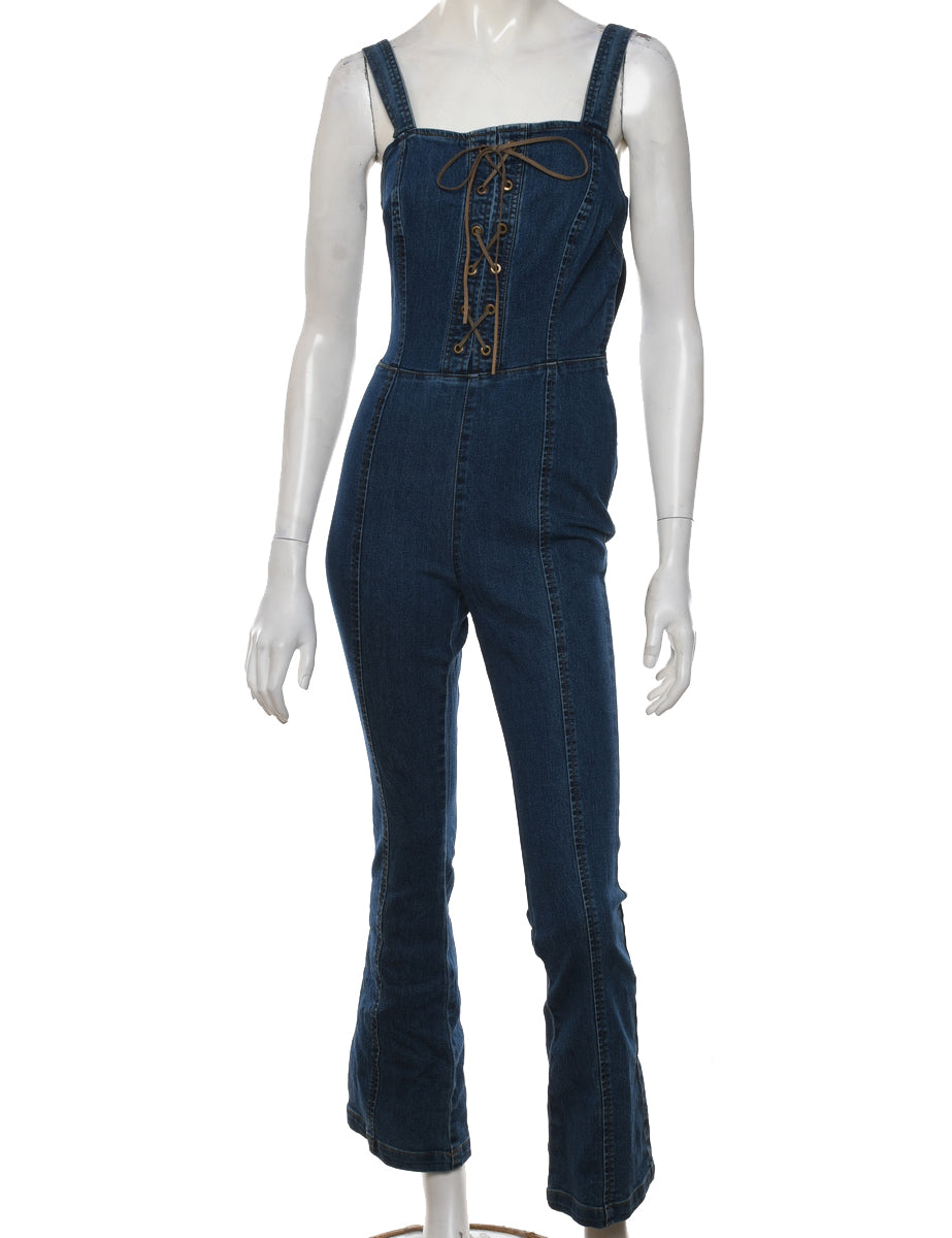 Vintage Y2K Denim Lace Up Jumpsuit - M