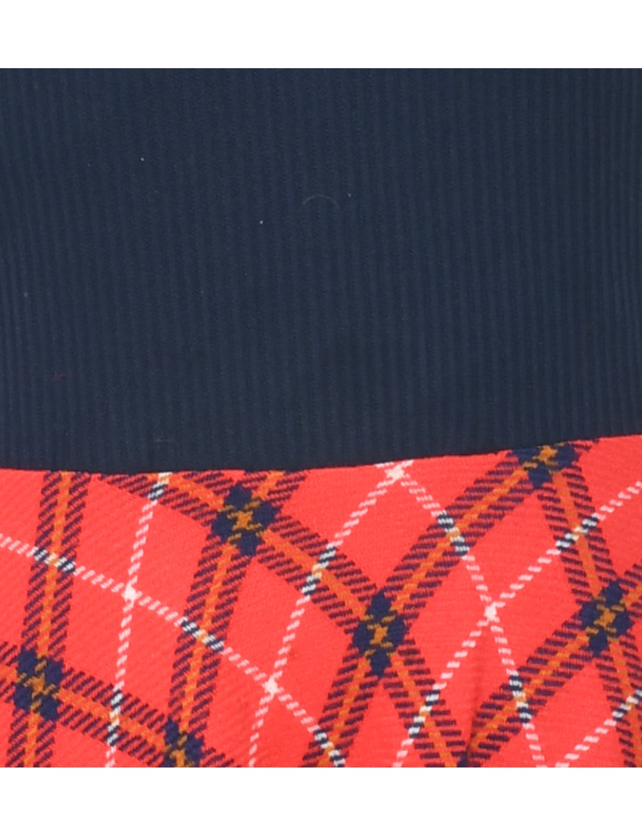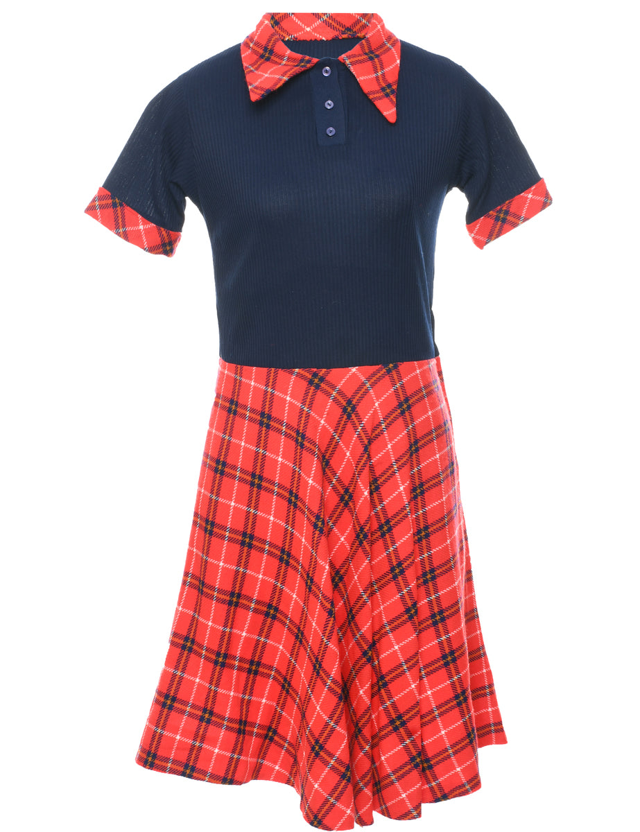 Checked dress comes in navy & red with a 70's collar.