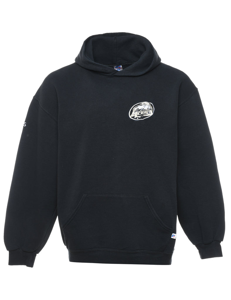 Vintage Black Hooded Embroidered Sweatshirt - L
