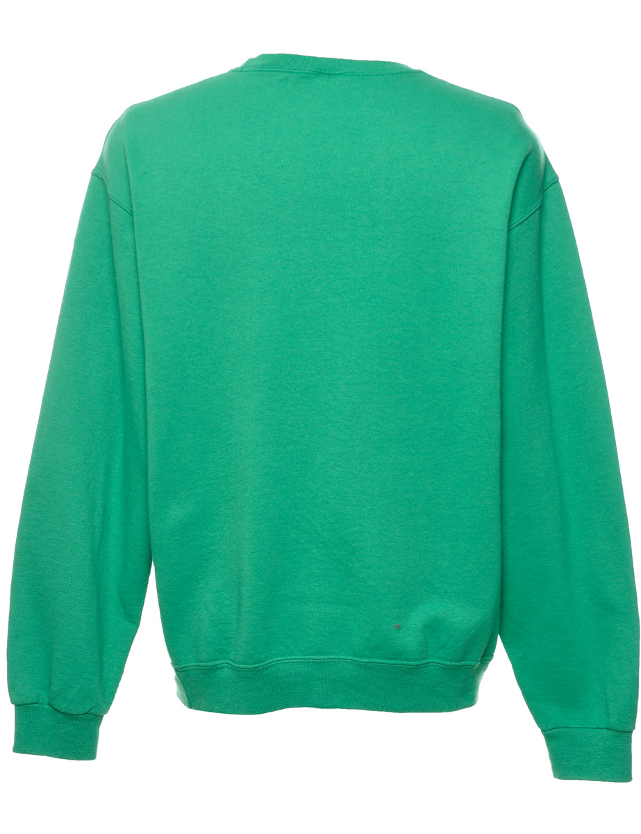 Vintage Cat Printed Light Green Christmas Sweatshirt - L