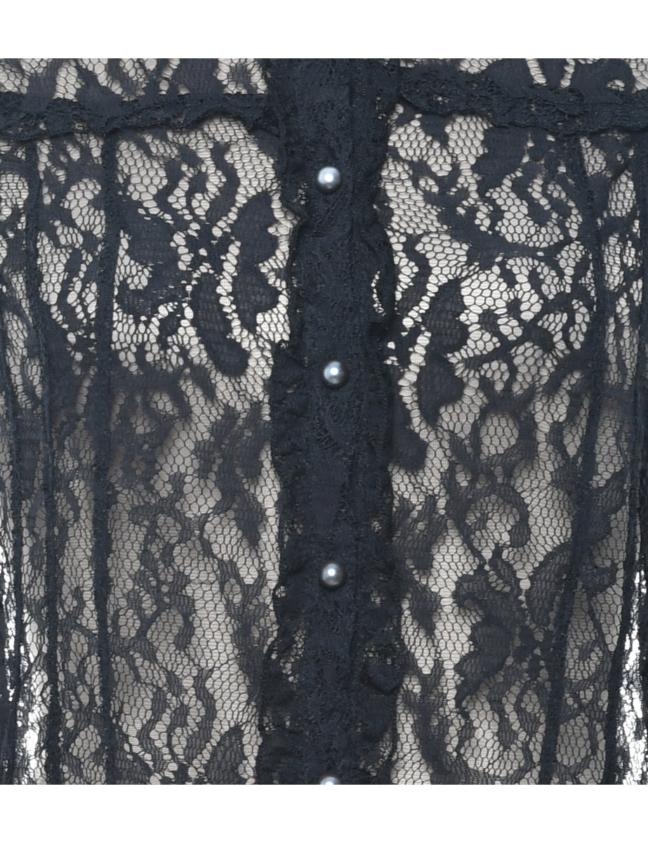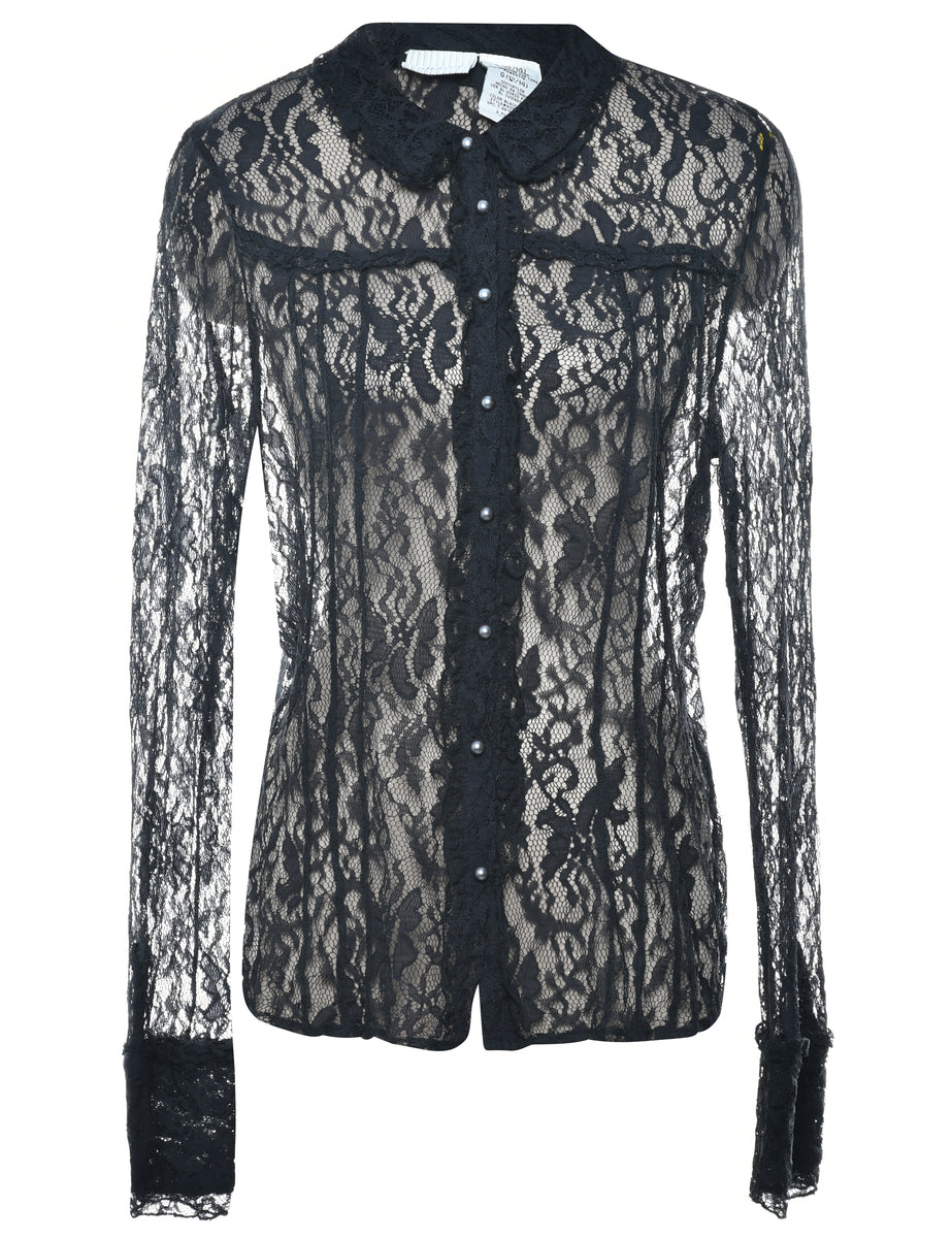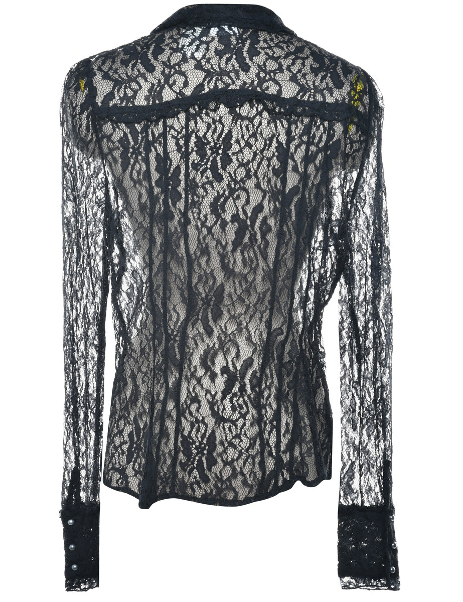 Vintage Crochet Evening Shirt - L