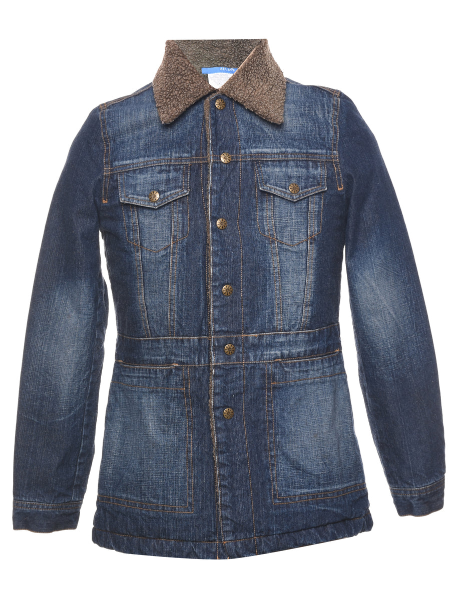 Vintage Dark Wash Shearling Denim Jacket - XS
