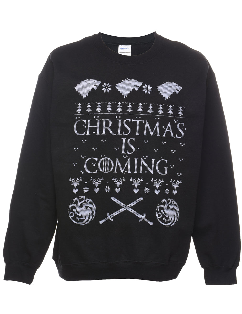 Game of Thrones design black & grey printed Christmas sweatshirt with a drop shoulder.
