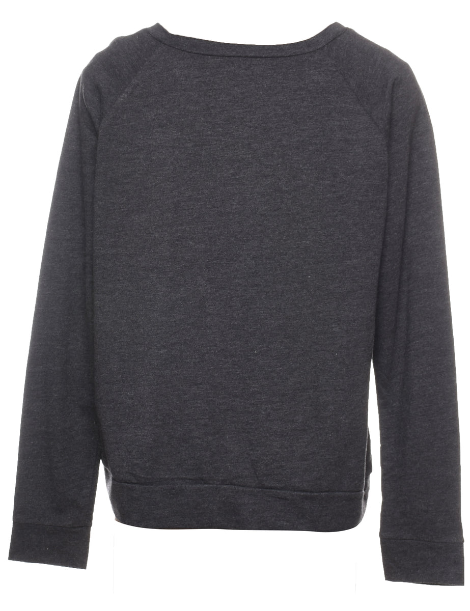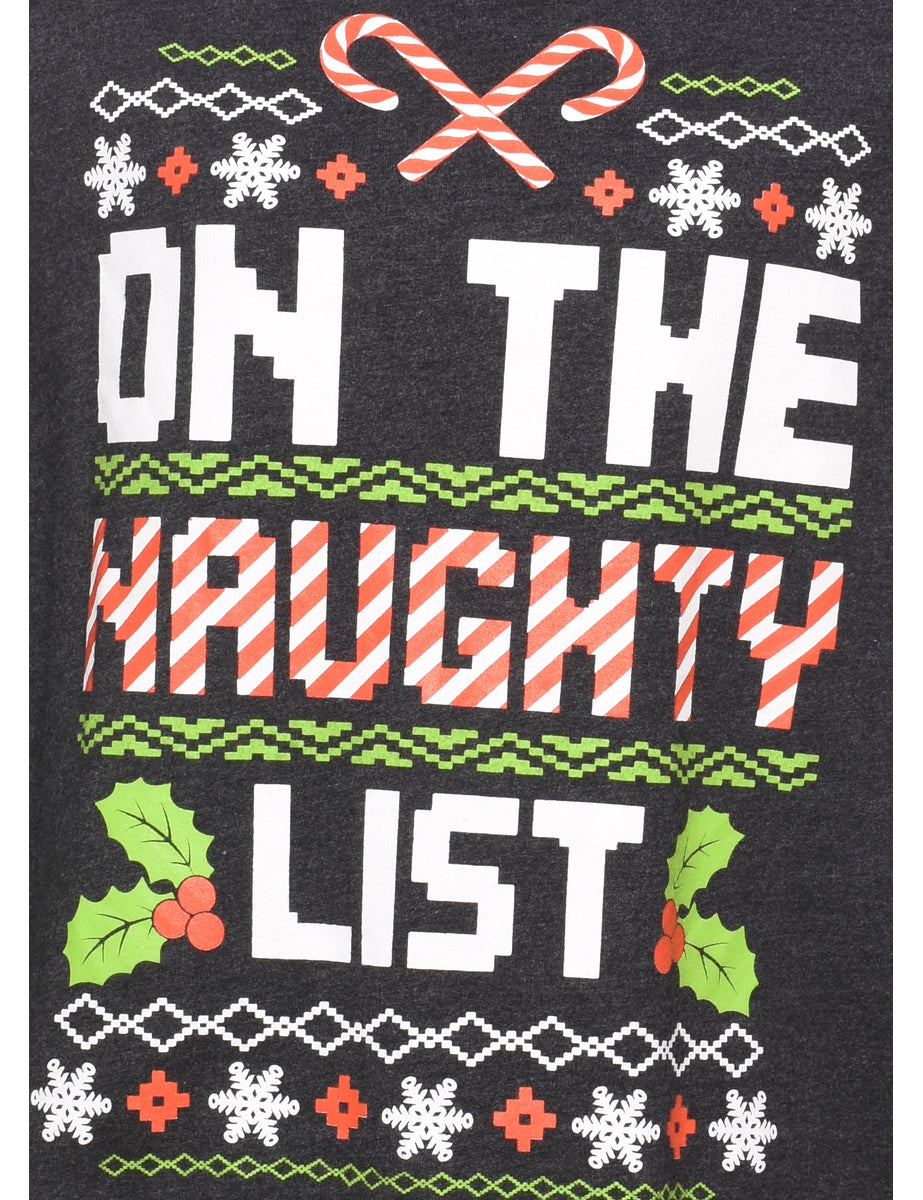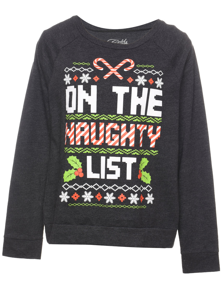 Dark grey On The Naughty List printed sweatshirt complete with raglan sleeves.