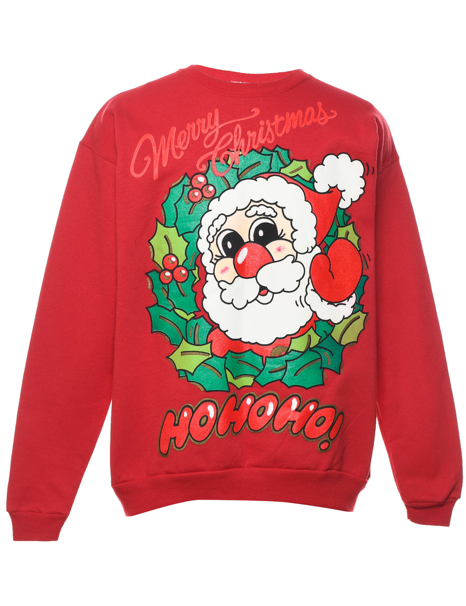 Vintage Santa Claus Design Red Christmas Sweatshirt - M
