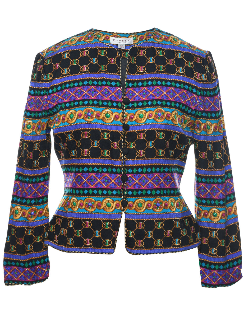Button front jacket in multi-colour.