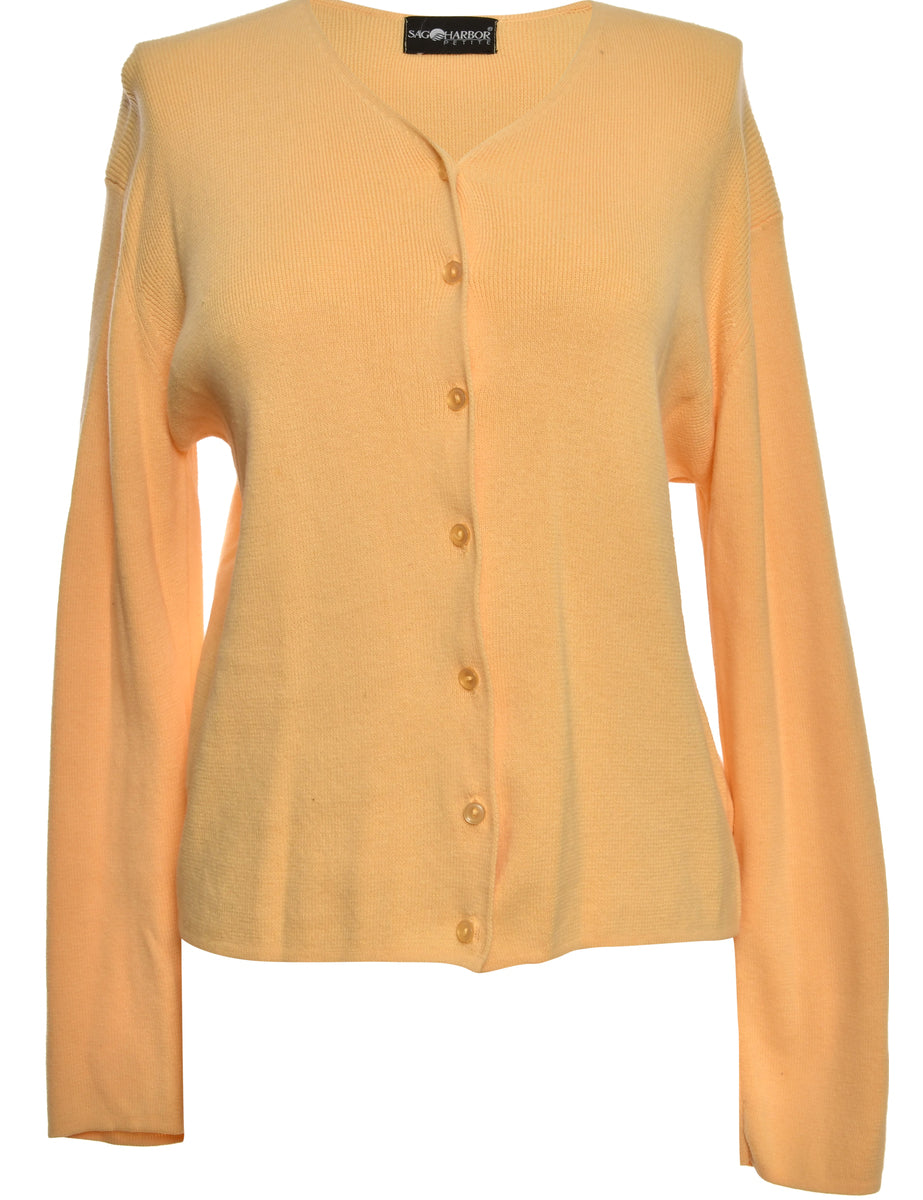 Fine knit cardigan comes in yellow. From the brand Sag Harbor.